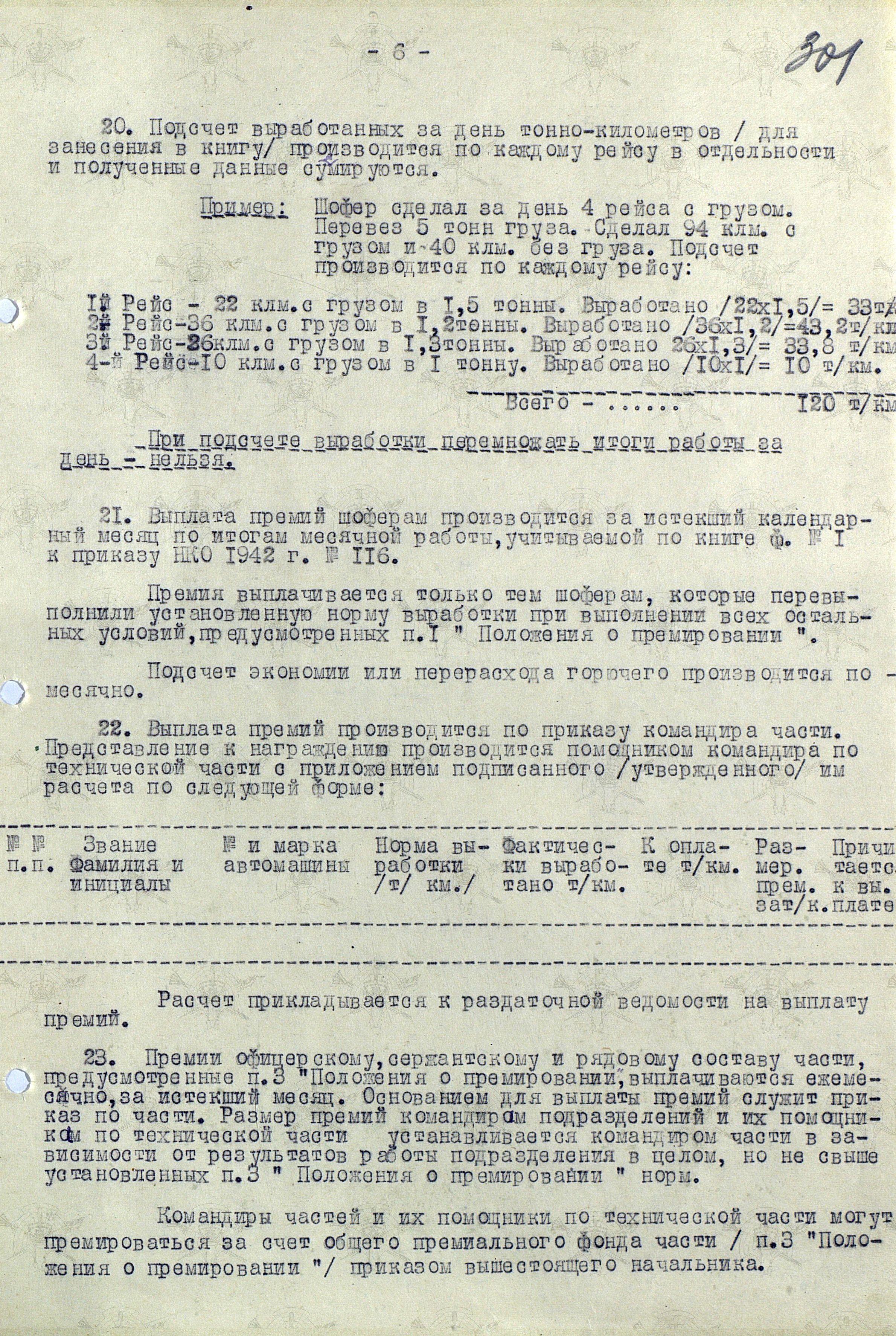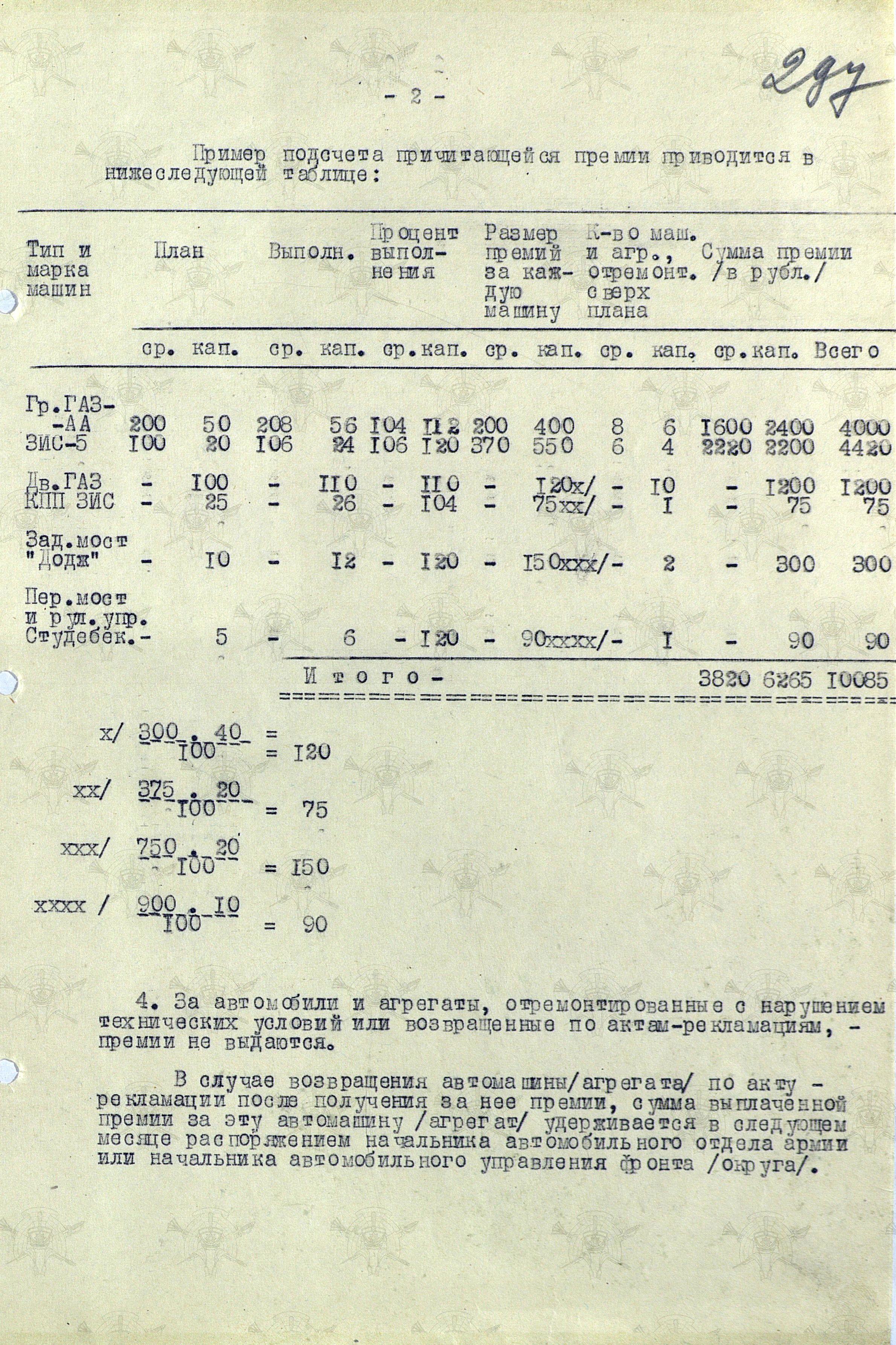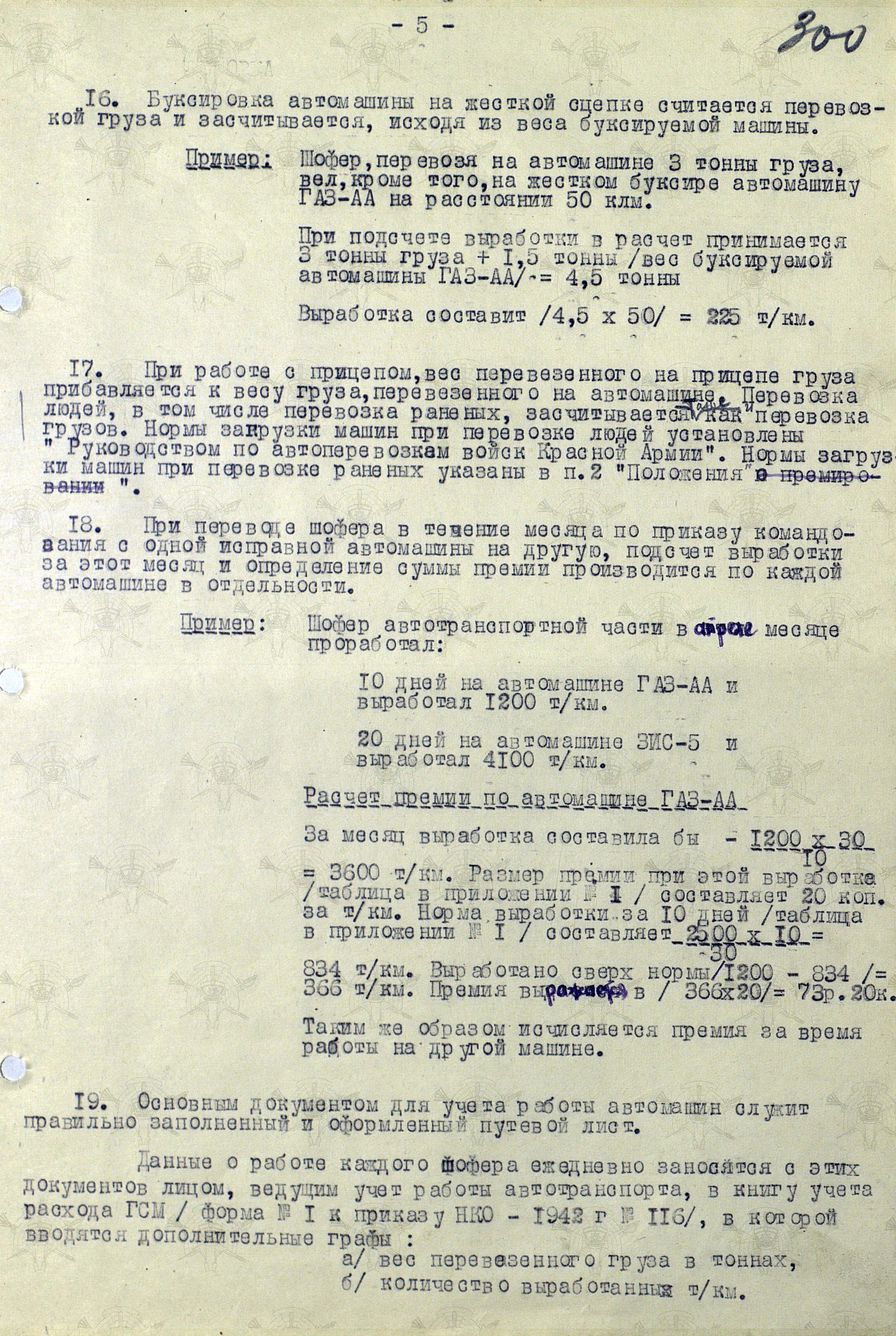 Мы же полистаем документ, утвержденный начальником Тыла Красной Армии генералом армии А.В. Хрулёвым 25 декабря, а точнее «Инструкцию о порядке выплаты денежных премий за ремонт автомашин и агрегатов, ремонт и изготовление автомобильных деталей, а также за безаварийное вождение и хорошее содержание автомобильного парка Красной Армии (Постановление СНК СССР № 1296 от 21 ноября 1943 года)».