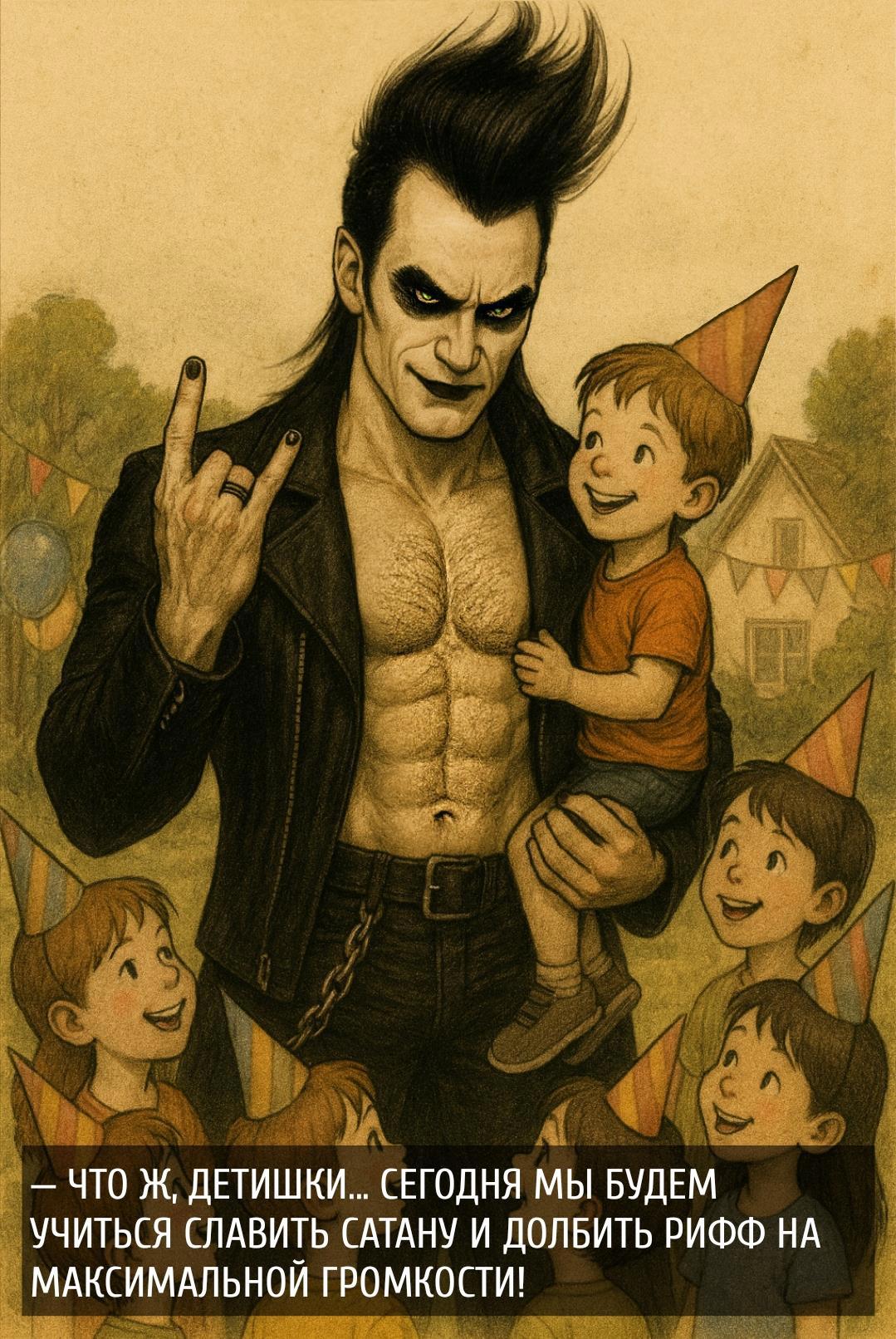 Автор: Владислава АзисУпоминалось единожды во второй главе, что Мистер Рок как-то имел честь присутствовать на праздновании десятого дня рождения Стаса в качестве не совсем запланированного аниматора. Понравилась ли детям его жёсткая deathская музыка?..