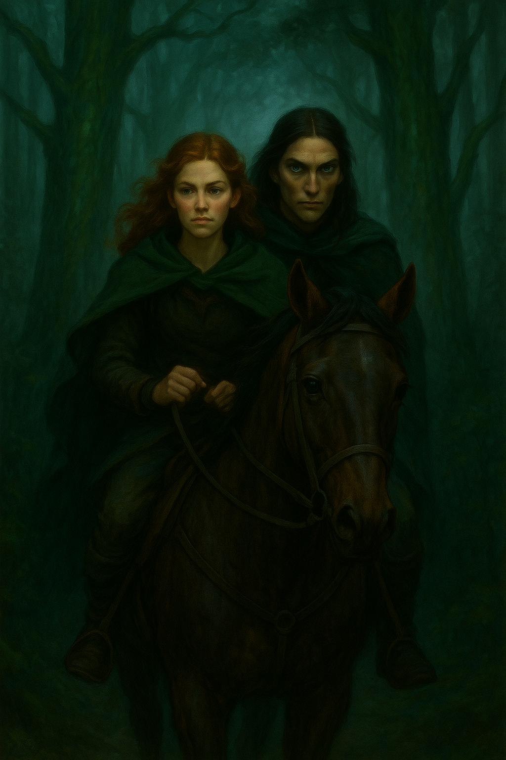 Девушка взмахнула поводьями, и кобыла рванула вперёд, преодолевая пространство, словно тень, скользящая по земле. Вдали виднелись мрачные силуэты деревьев, стоявших как стражи на границе неизвестного. Лес был их единственным шансом на спасение, таких, как этот дикарь со звериными глазами, в королевстве убивали не раздумывая.