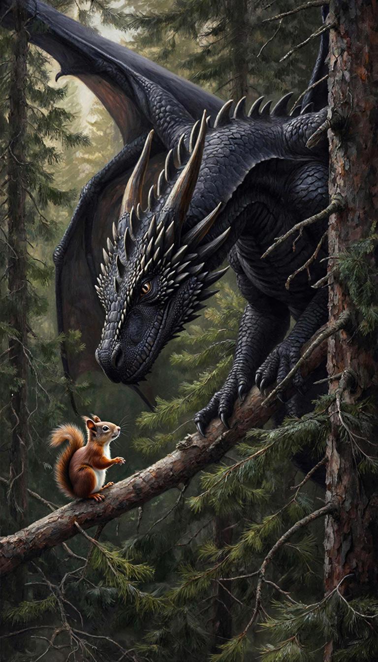 Автор: Алекс БутаровГотовлю романчик "Не ходите, белки, замуж!" На картинках собственно два ГГ - вселившаяся в белку девица из нашего мира и вымерший, было, в том мире дракон. Ну да, при попадании в лапы рыжей медсестрички-недоучки окончательное вымирание пришлось отложить. И сгенерил я несколько вариантов, теперь голову ломаю, какой лучше. Помогите, люди добрые!