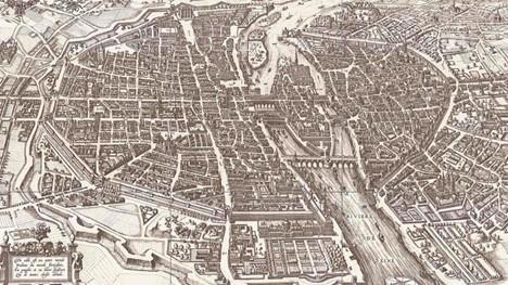 Париж в 1618 году. До конца XVII века многие улицы были завалены зловонной грязью. (Изображение: Коллекция карт библиотеки Гарольда Б. Ли/Wikimedia Commons.)