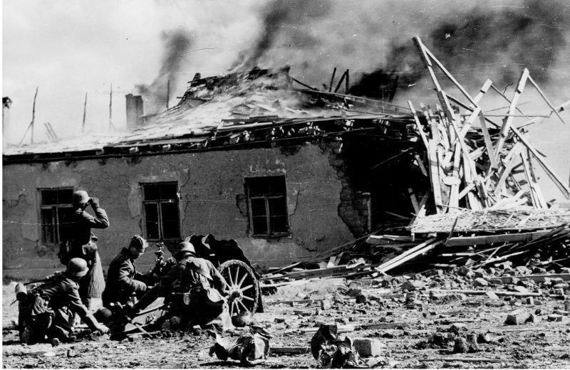 Расчет немецкой 75-мм легкой пехотной гаубицы leIG 18 (7,5 cm leIG 18) в бою на территории СССР. Весьма оригинальное пехотное орудие непосредственной поддержки пехоты.