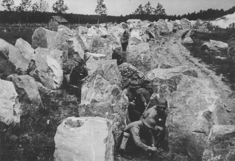 Финские солдаты, работающие на строительстве линии Салпа. Линия так и не увидела боевых действий, так как война остановилась в 1944 году на Карельском перешейке.