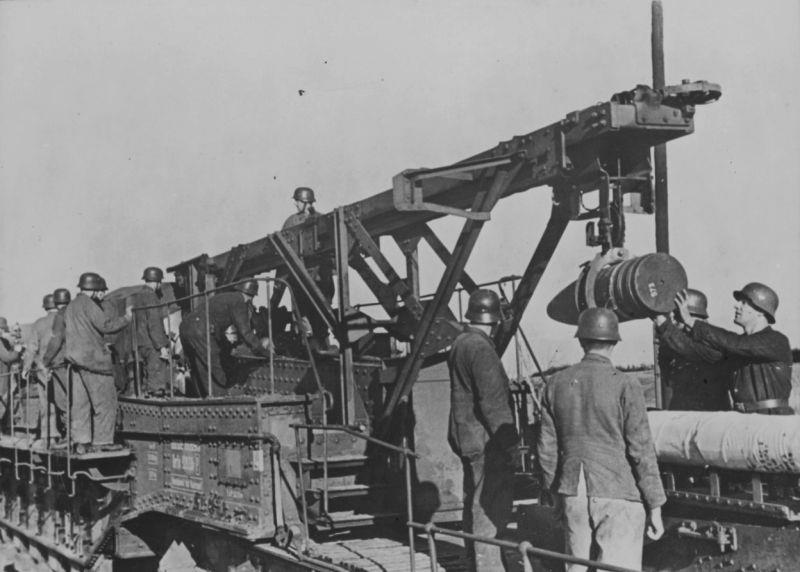 Немецкий артиллерийский расчет готовит к заряжанию 340-мм пушку K(E) 673(f). 1944 г.