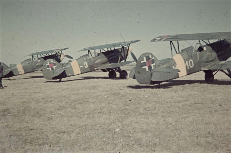 Истребители Avia B-534 военно-воздушных сил Словакии на аэродроме на Восточном фронте. Время и место неизвестны.