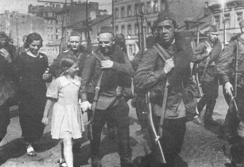 Советские солдаты устанавливают пограничный столб между Польшей и Германией на мосту через Одер. Февраль 1945 года. Польше по решению СССР были прирезаны огромные территории Силезии.