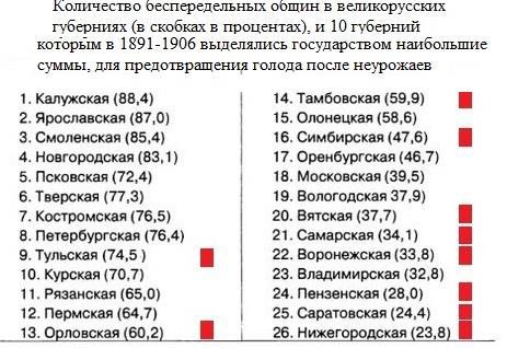 Переделы земли (вызывавшие такой восторг у революционеров и реакционеров), явно коррелируют с неурожаями и нищетой. Там где переделов не было, катастрофических неурожаев тоже практически не было.