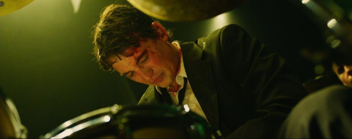Режиссер не поскупился ни на краски, ни на унижения. Репетиционное помещение похоже на подвал (почти отсылка к «Репетиции оркестра»), конкурсные залы ничуть не лучше, это музыкальная преисподняя, и дирижер напоминает гоблина, оружие которого – пощечины и издевки, а то и стул, который летит в голову оркестранта. Это дрессировка: неверный ритм – и Флетчер бьет по щекам студента, осыпает насмешками, заставляет обзывать себя плаксой. Эндрю сидит на запасной скамейке, но только ли случай выталкивает его вперед, когда он невзначай теряет ноты напарника? Все это время работает как проклятый, до седьмого пота, как грузчик, до кровавых мозолей между пальцами, и когда попадает в основной состав, считает, что заслужил это. Он становится жестче, словно поднабравшись от Флетчера, твердеет челюсть, ходят желваки. В нем просыпается одержимость, ради своей мечты он готов отказаться от многого. Ему плевать, что оркестранты думают, будто он подставил Тэннера, у него нет друзей, сверстники и их развлечения ему неинтересны, любовь отнимает время, и он расстается с любимой, потому что простая, без особых мечтаний, девушка тянет его назад. А дьявол… о, не почивай на лаврах, Эндрю! дьявол по-прежнему недоволен и приводит третьего музыканта. Начинается битва, троица барабанит до ночи, остальные музыканты не смеют встать и уйти. Взмокшие барабанщики трудятся, Эндрю не жалеет ни пота, ни сбитых рук, ни содранной с ладоней кожи. Кровь заливает барабан, это метафора каторжного труда ради искусства… и дьявол снова выбирает Эндрю.
