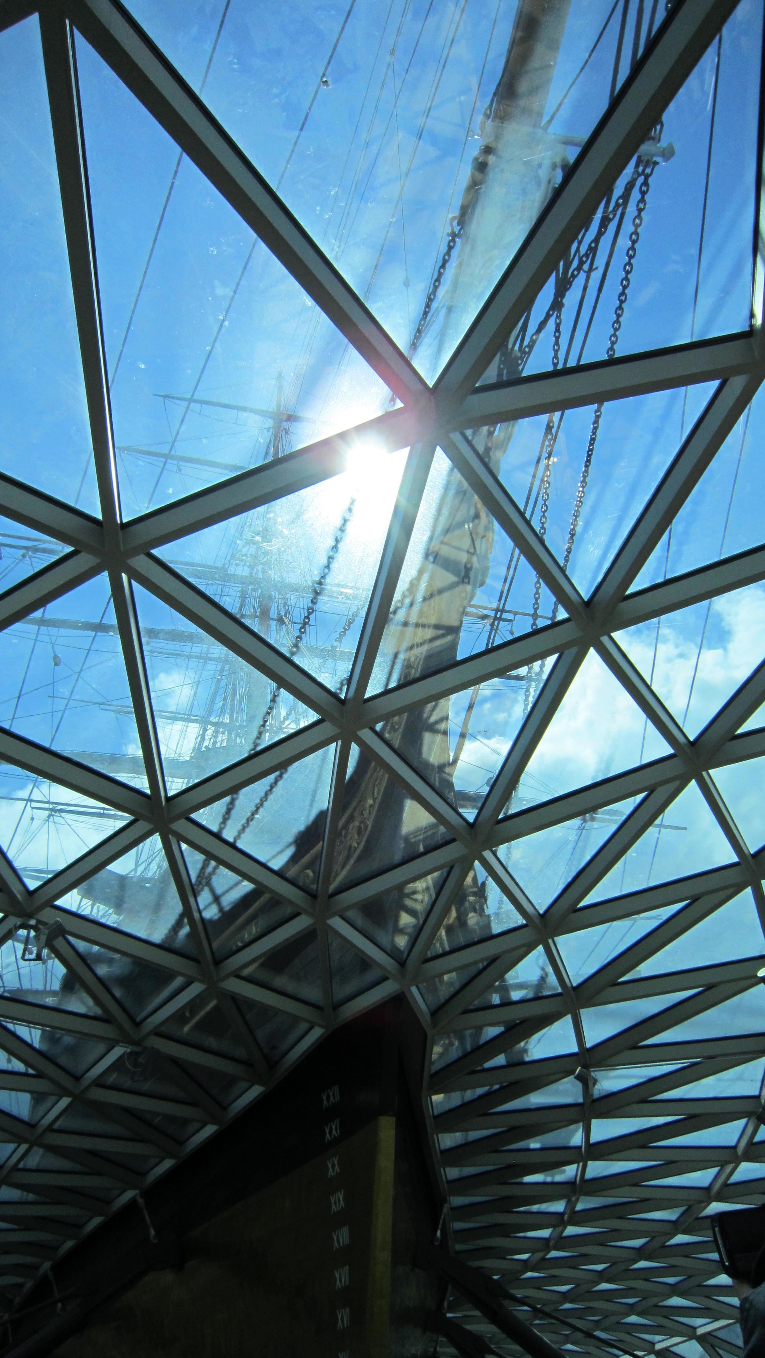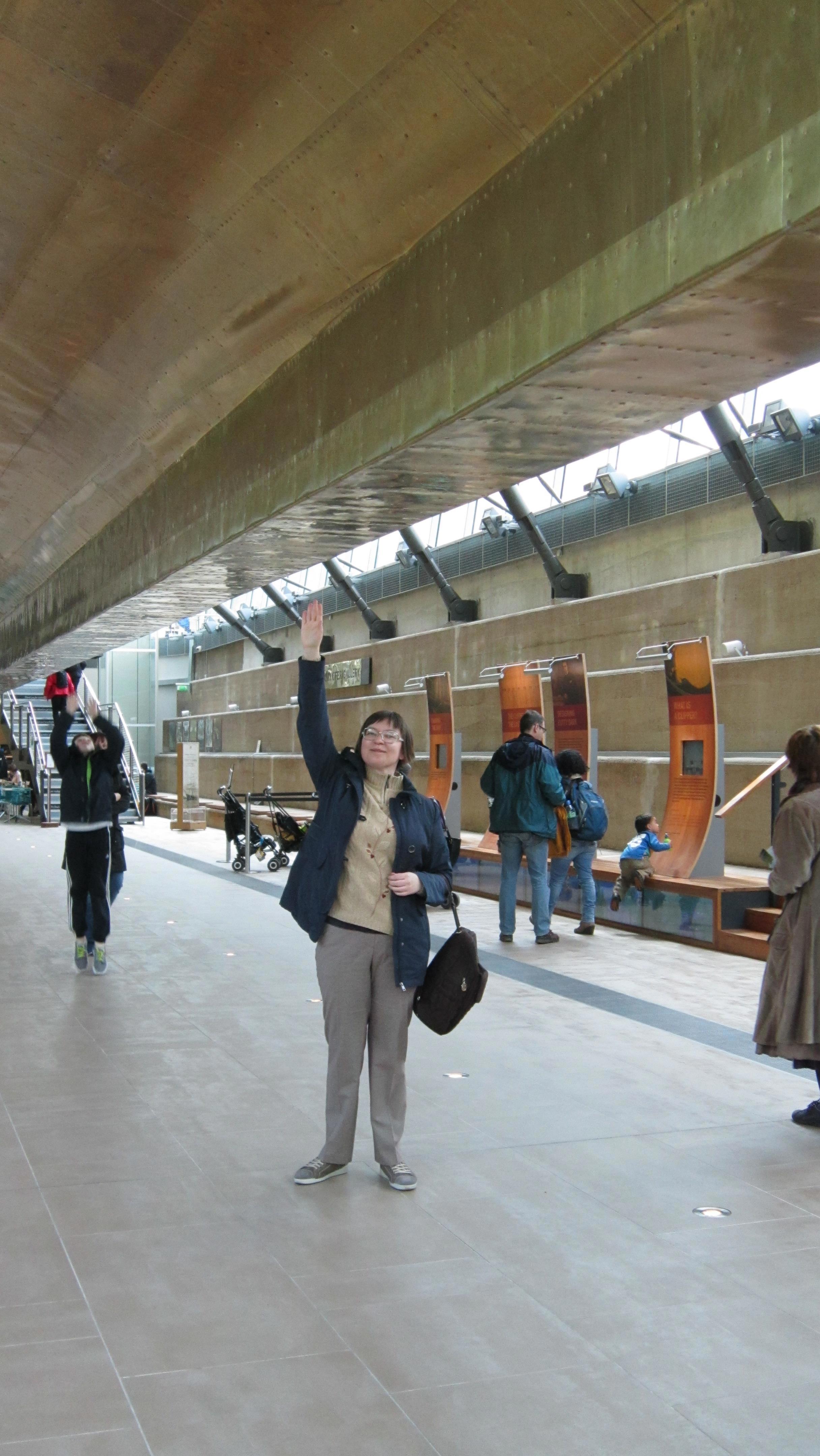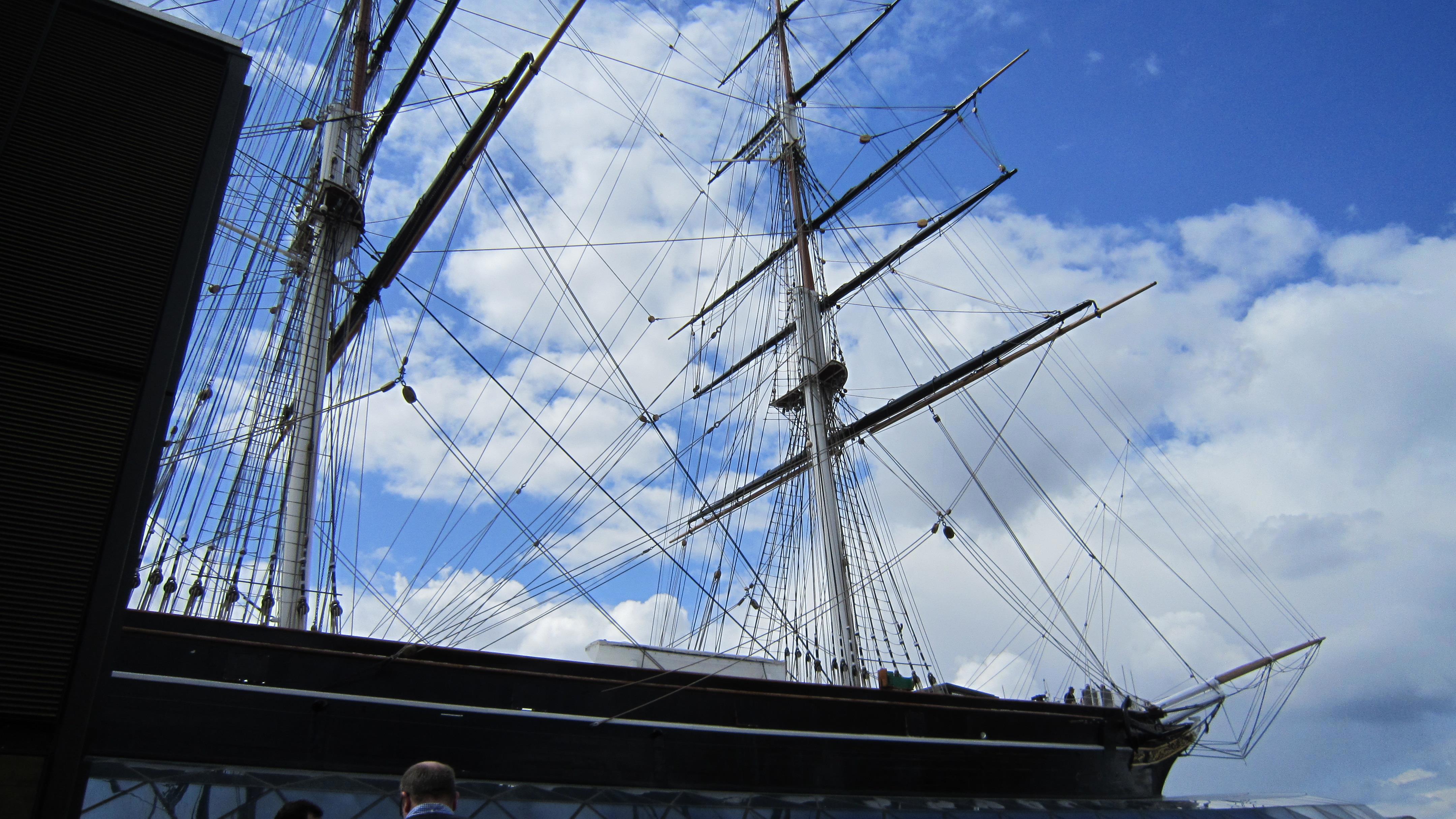 Это Гринвич, "Катти Сарк". Память меня подвела, она не вся в павильоне, стеклянная крыша имитирует поверхность воды, то есть, попадая в павильон, ты смотришь на корабль из-под воды. Почувствуй себя русалкой. Ну и таки я тут несколько толще, но, к счастью, речь не обо мне. Кстати, это апрель, люто холодно, надвигается холодный фронт с градом, так что на мне шотландский свитер, и я ему очень рада.