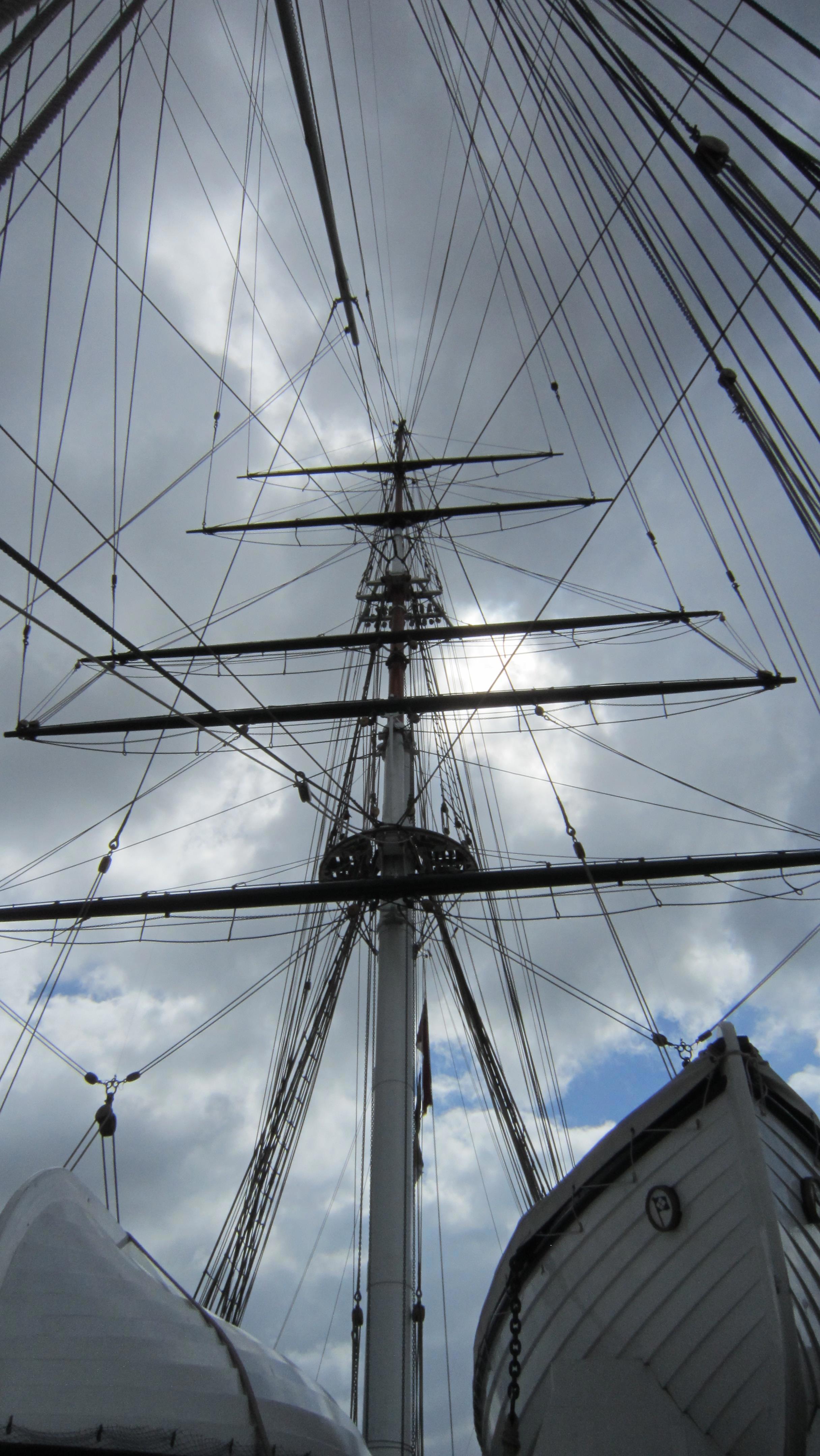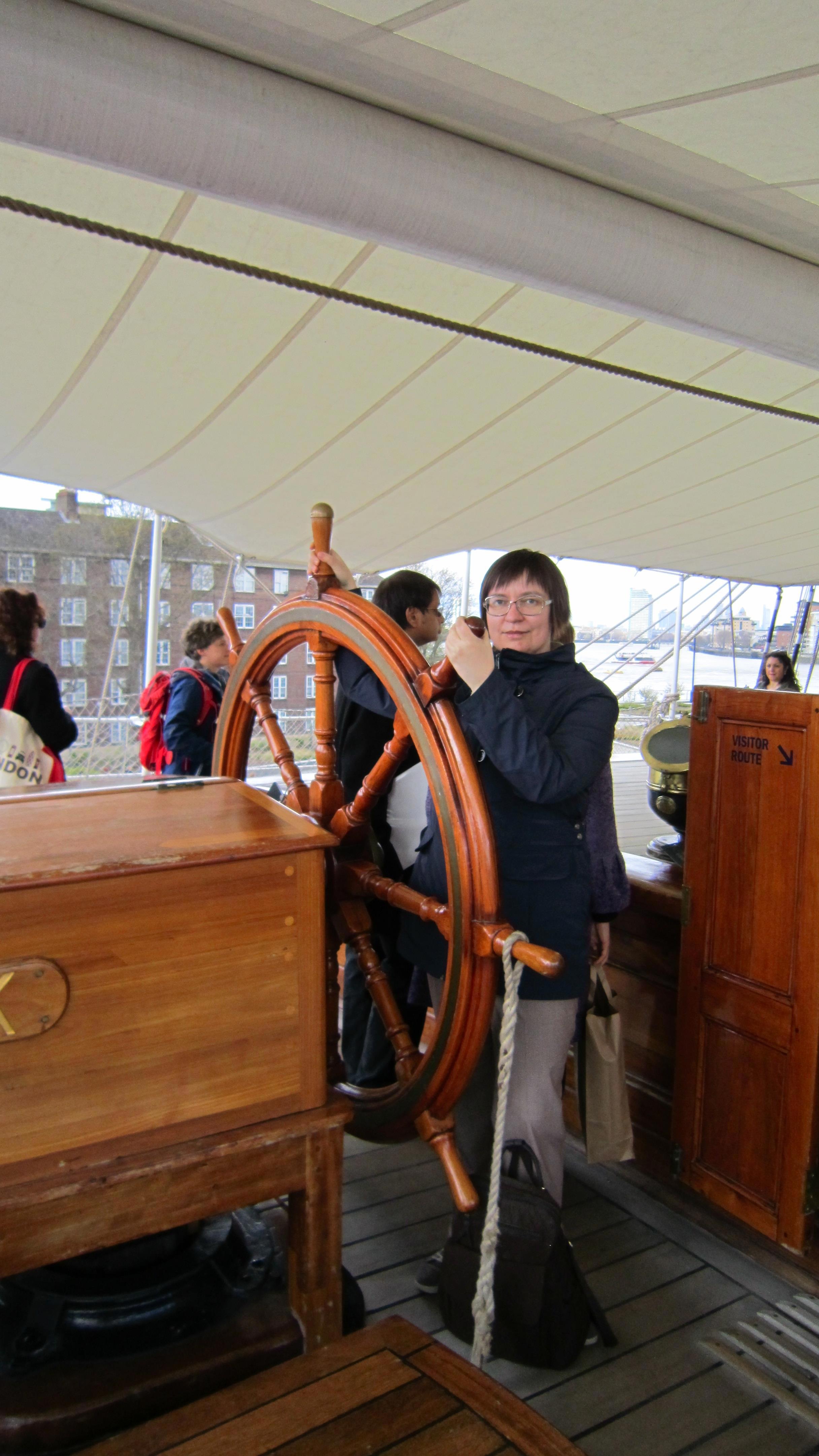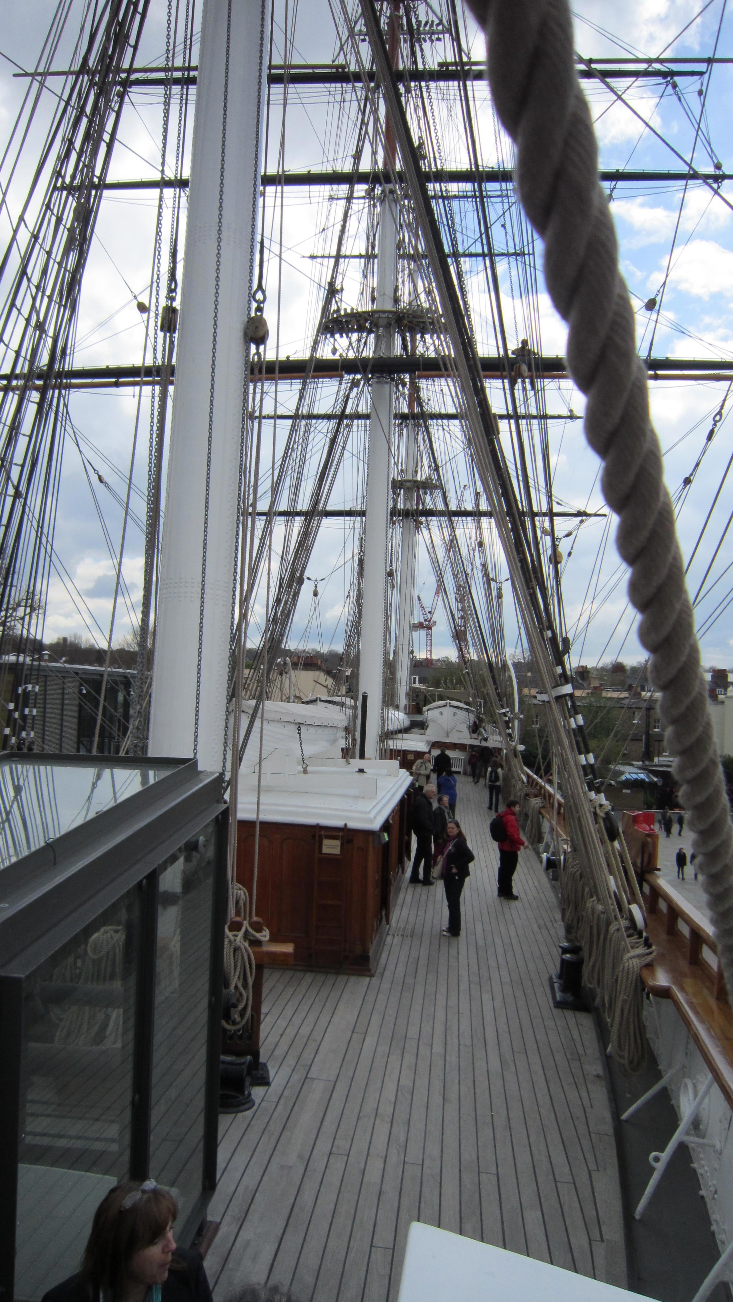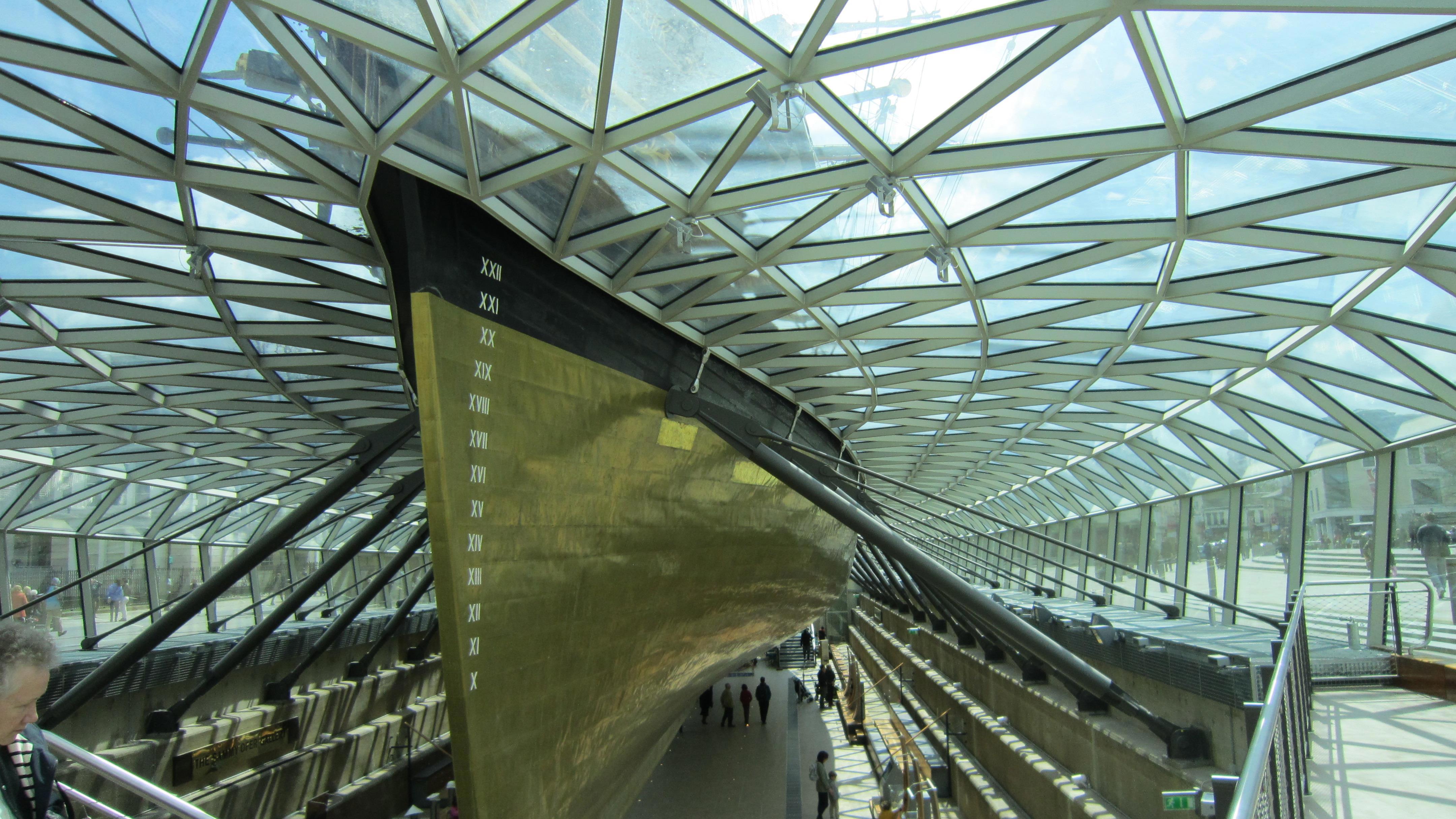 Это Гринвич, "Катти Сарк". Память меня подвела, она не вся в павильоне, стеклянная крыша имитирует поверхность воды, то есть, попадая в павильон, ты смотришь на корабль из-под воды. Почувствуй себя русалкой. Ну и таки я тут несколько толще, но, к счастью, речь не обо мне. Кстати, это апрель, люто холодно, надвигается холодный фронт с градом, так что на мне шотландский свитер, и я ему очень рада.