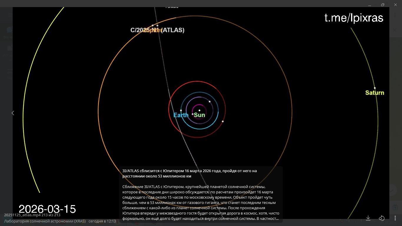 3I/ATLAS сблизится с Юпитером 16 марта 2026 года, пройдя от него на расстоянии около 53 миллионов км - https://t.me/lpixras/1853