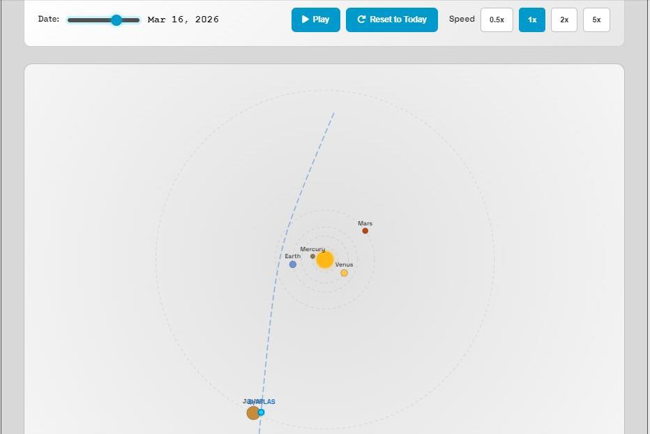 Сближение 3I/ATLAS с Юпитером, крупнейшей планетой солнечной системы, которое в последние дни широко обсуждается, по расчетам произойдет 16 марта следующего года около 15 часов по московскому времени. Объект пройдет чуть больше, чем в 53 миллионах км от газового гиганта, что станет последним тесным сближением с какой-либо из планет солнечной системы.