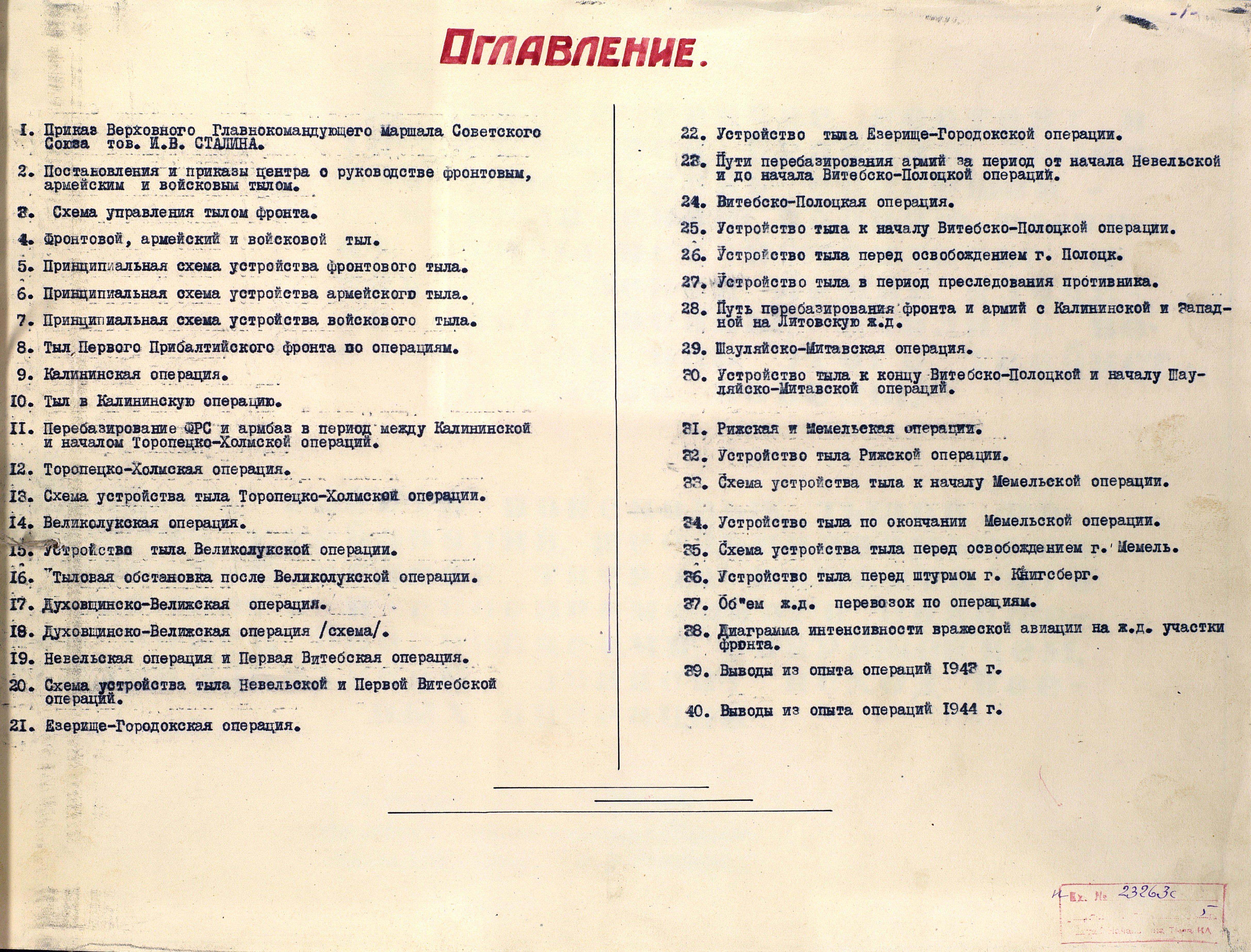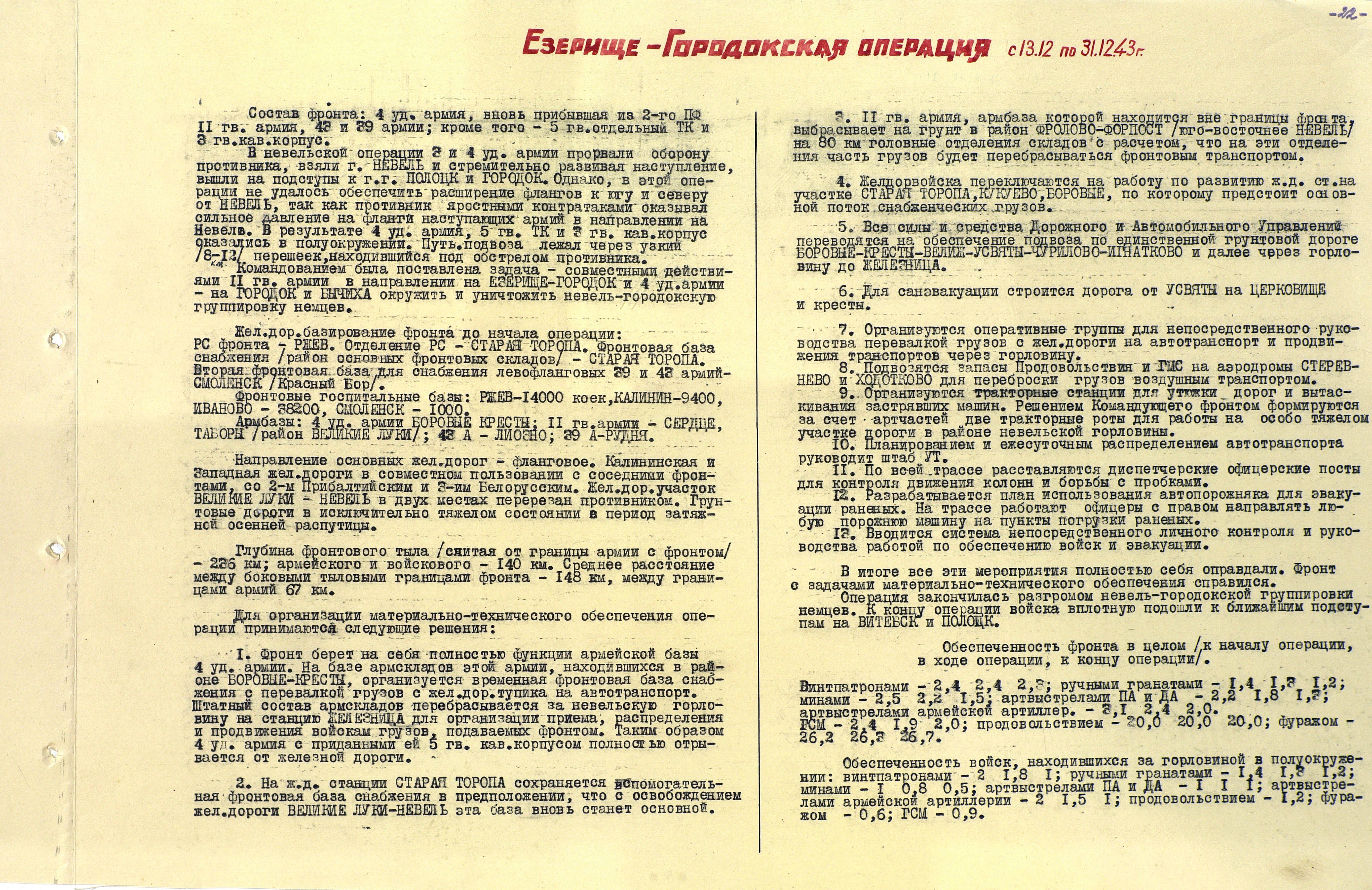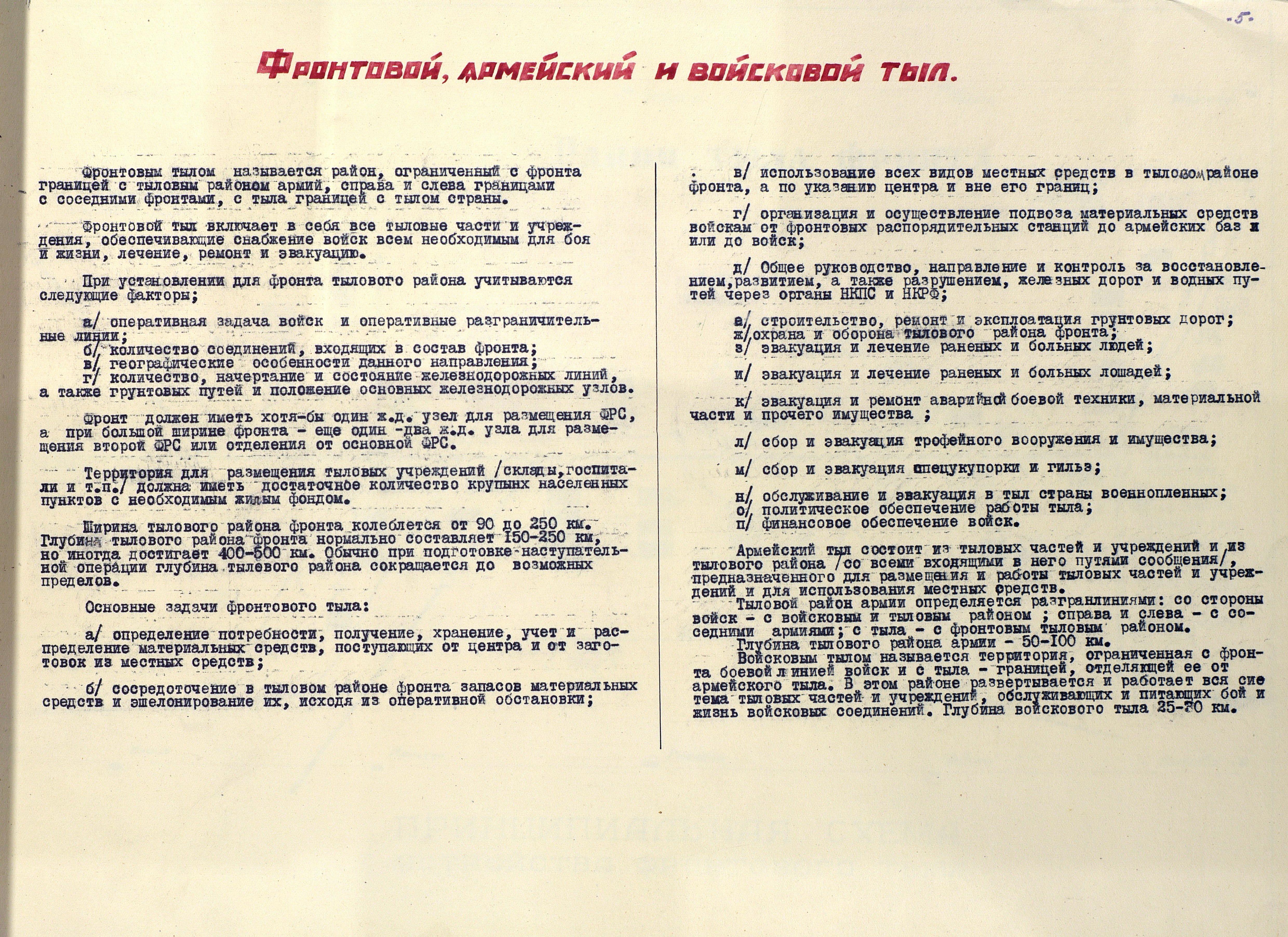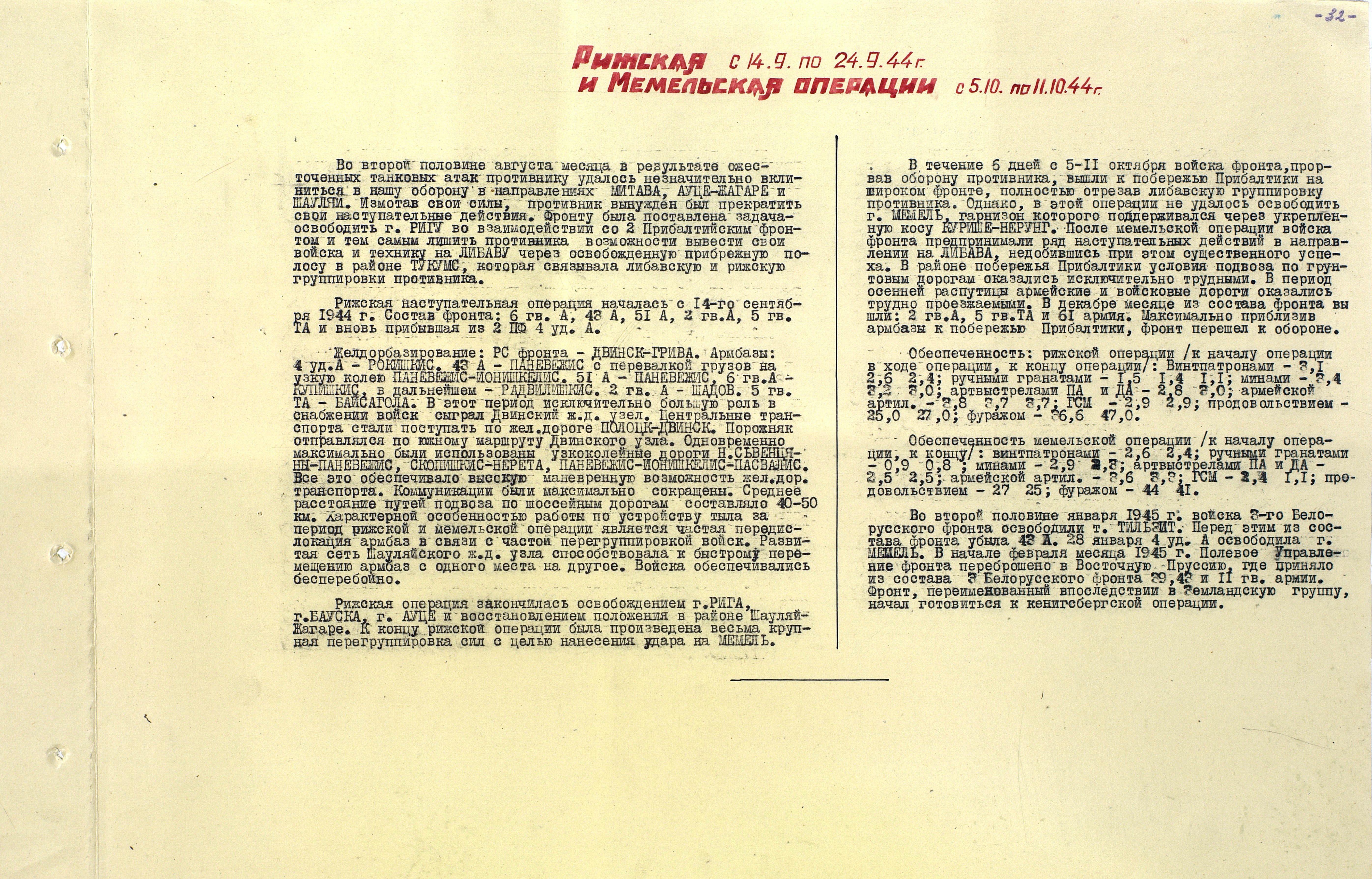 Материалы по устройству тыла 1 Прибалтийского фронта в сражениях Великой Отечественной