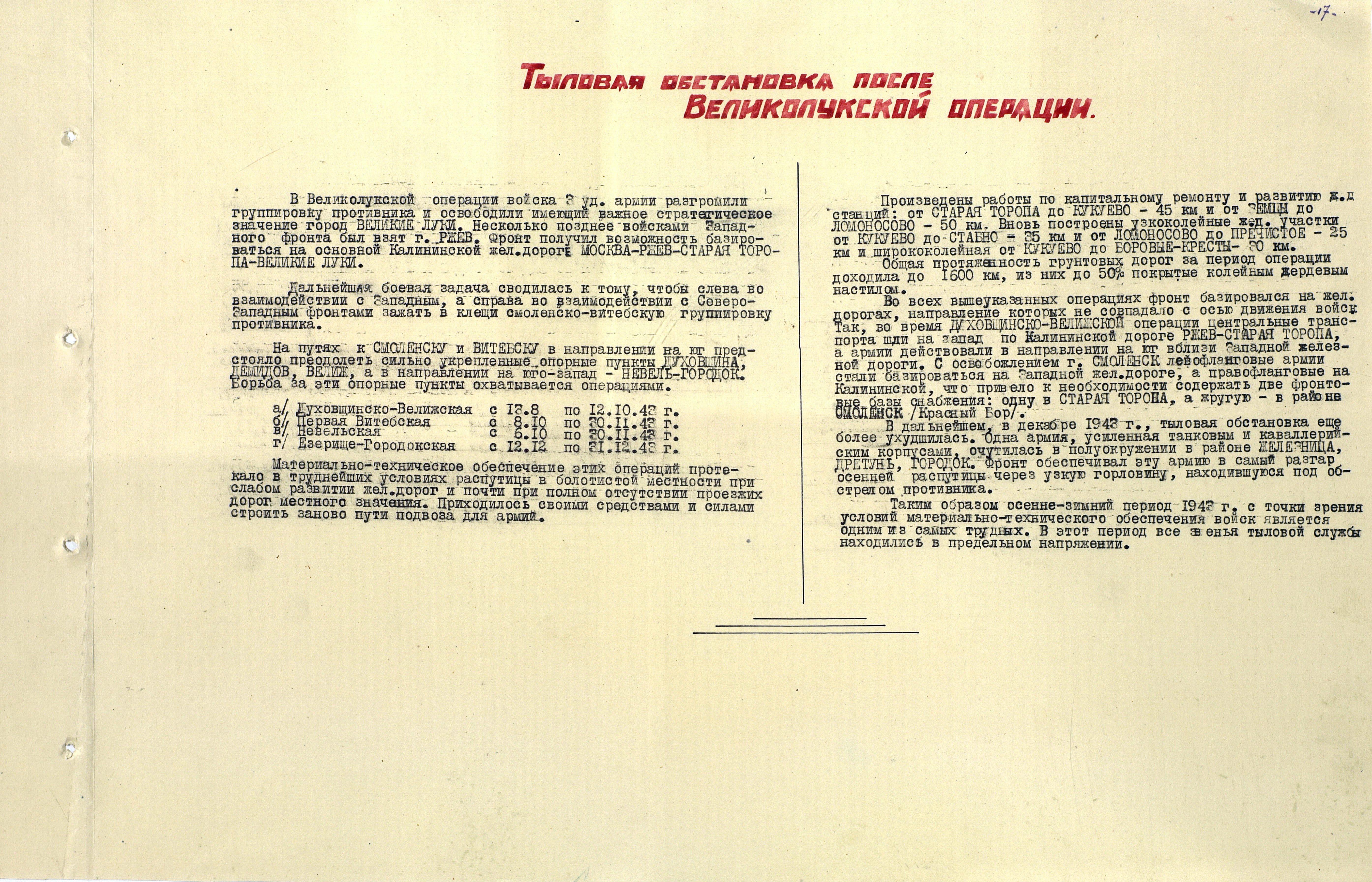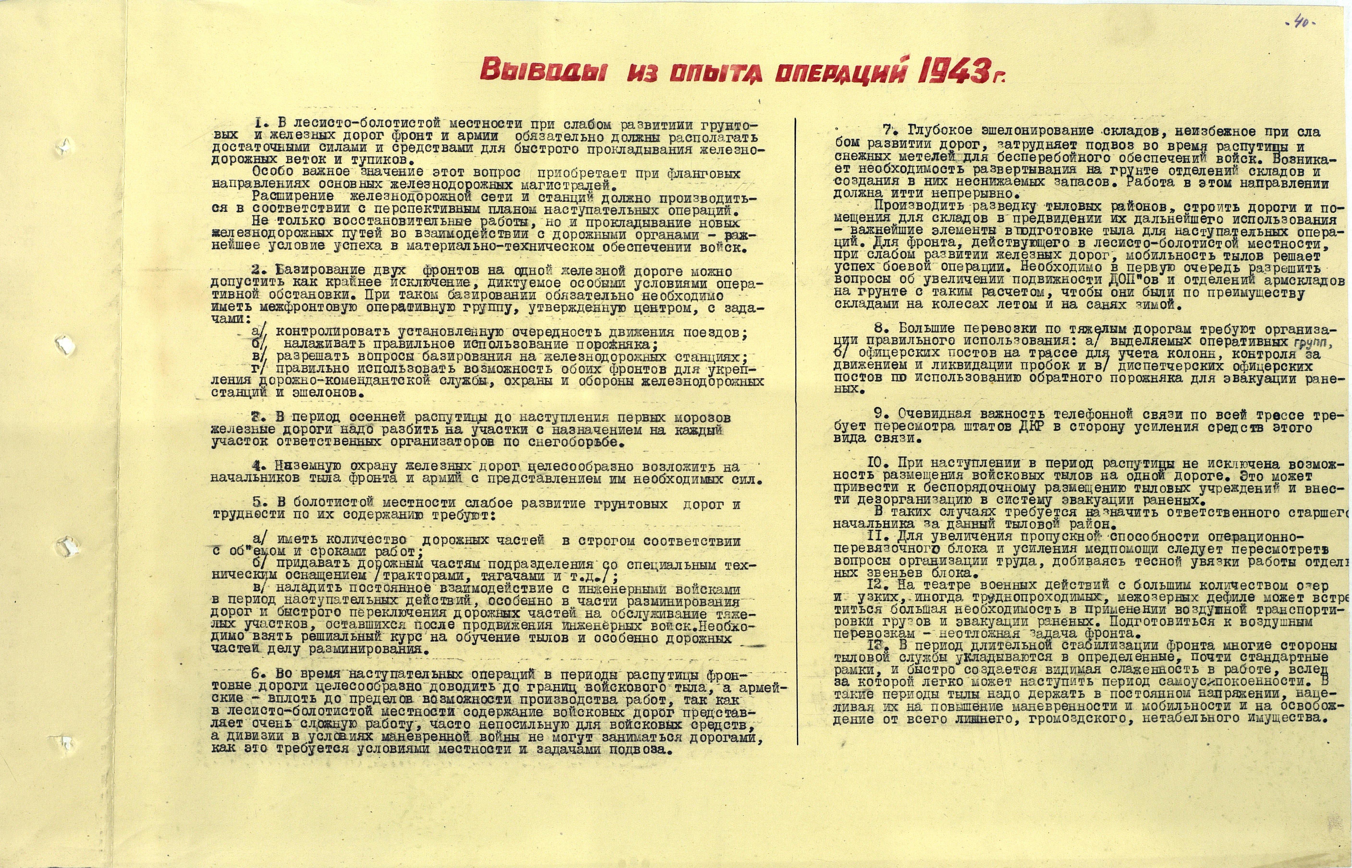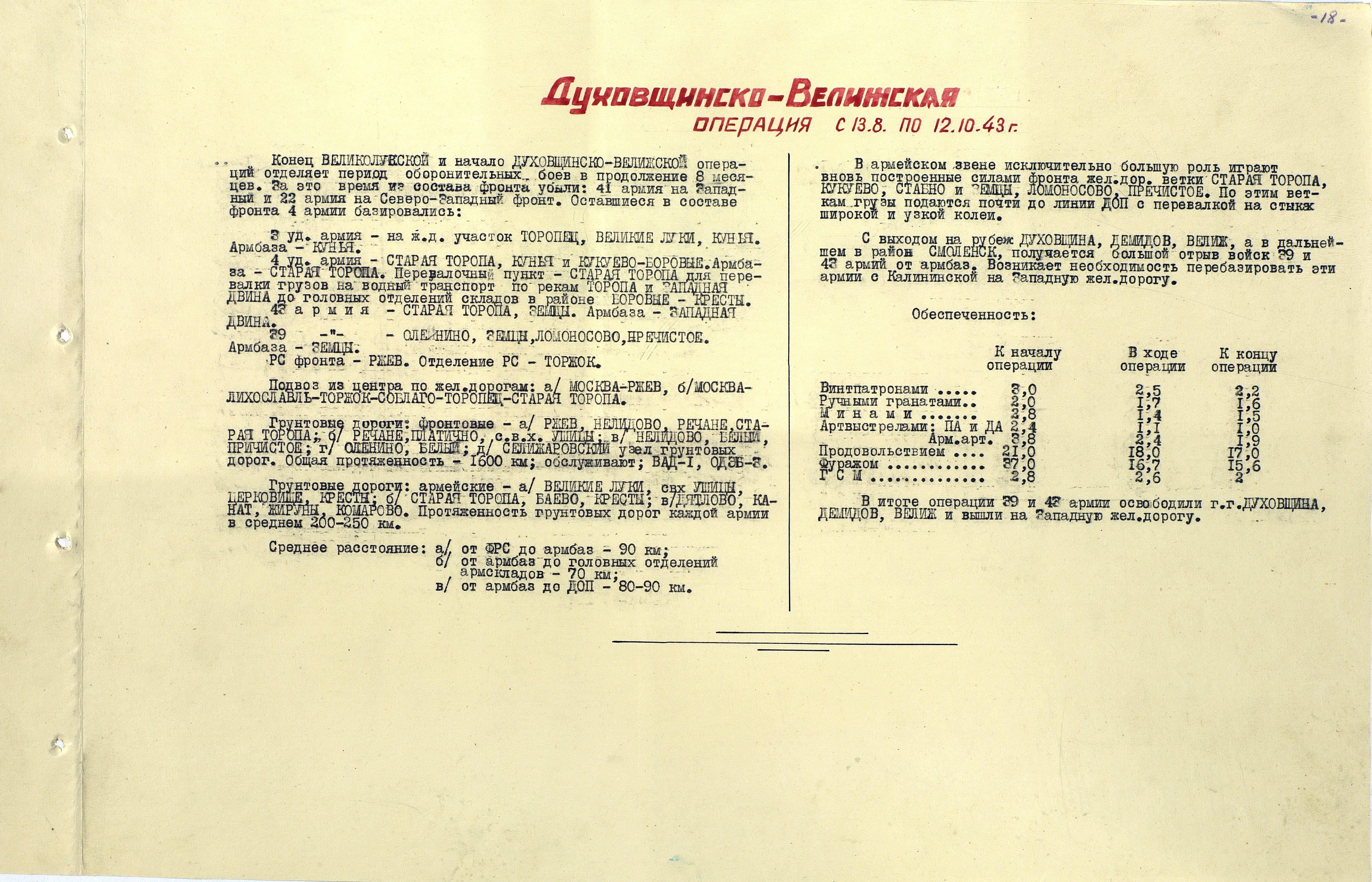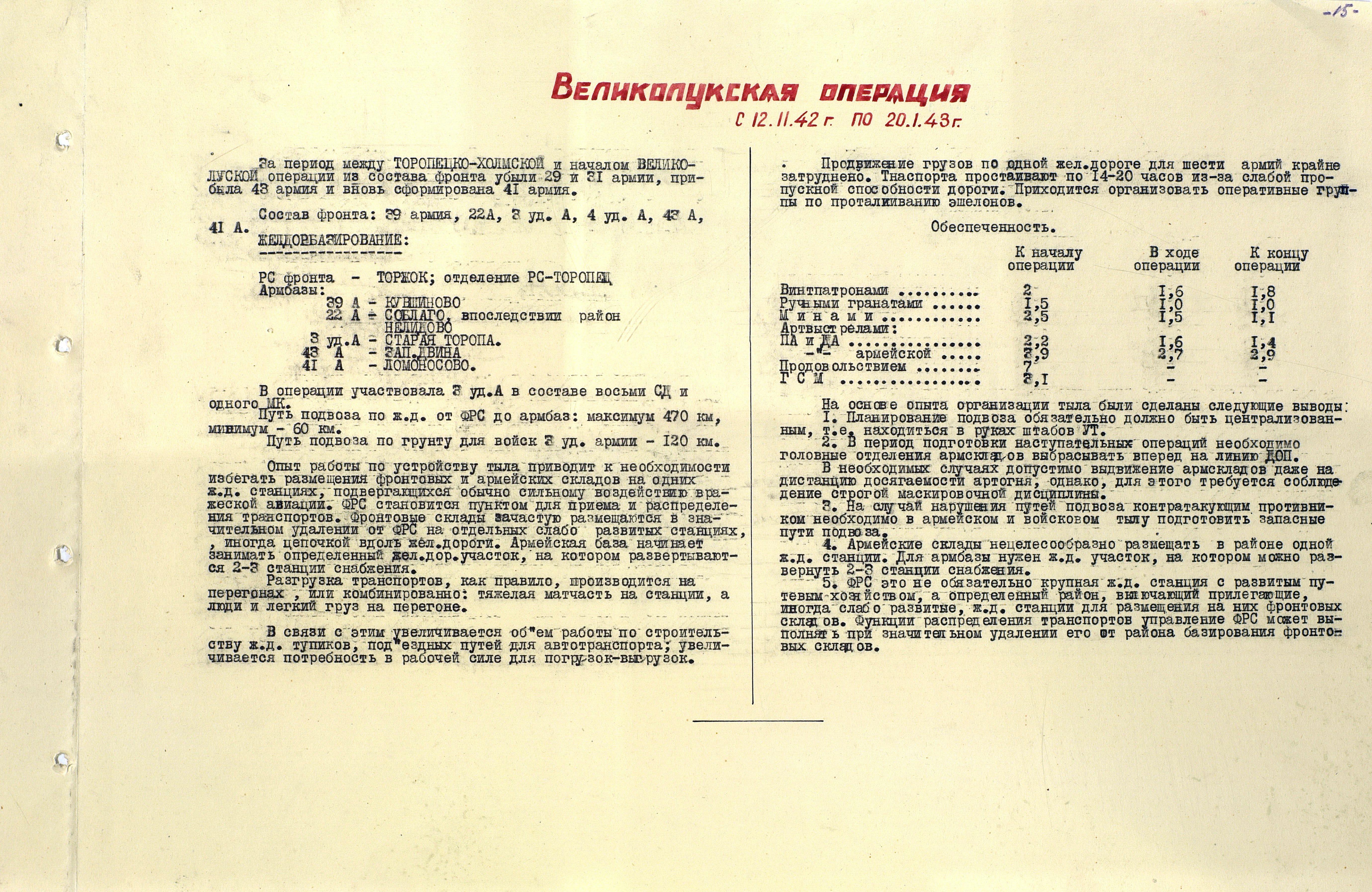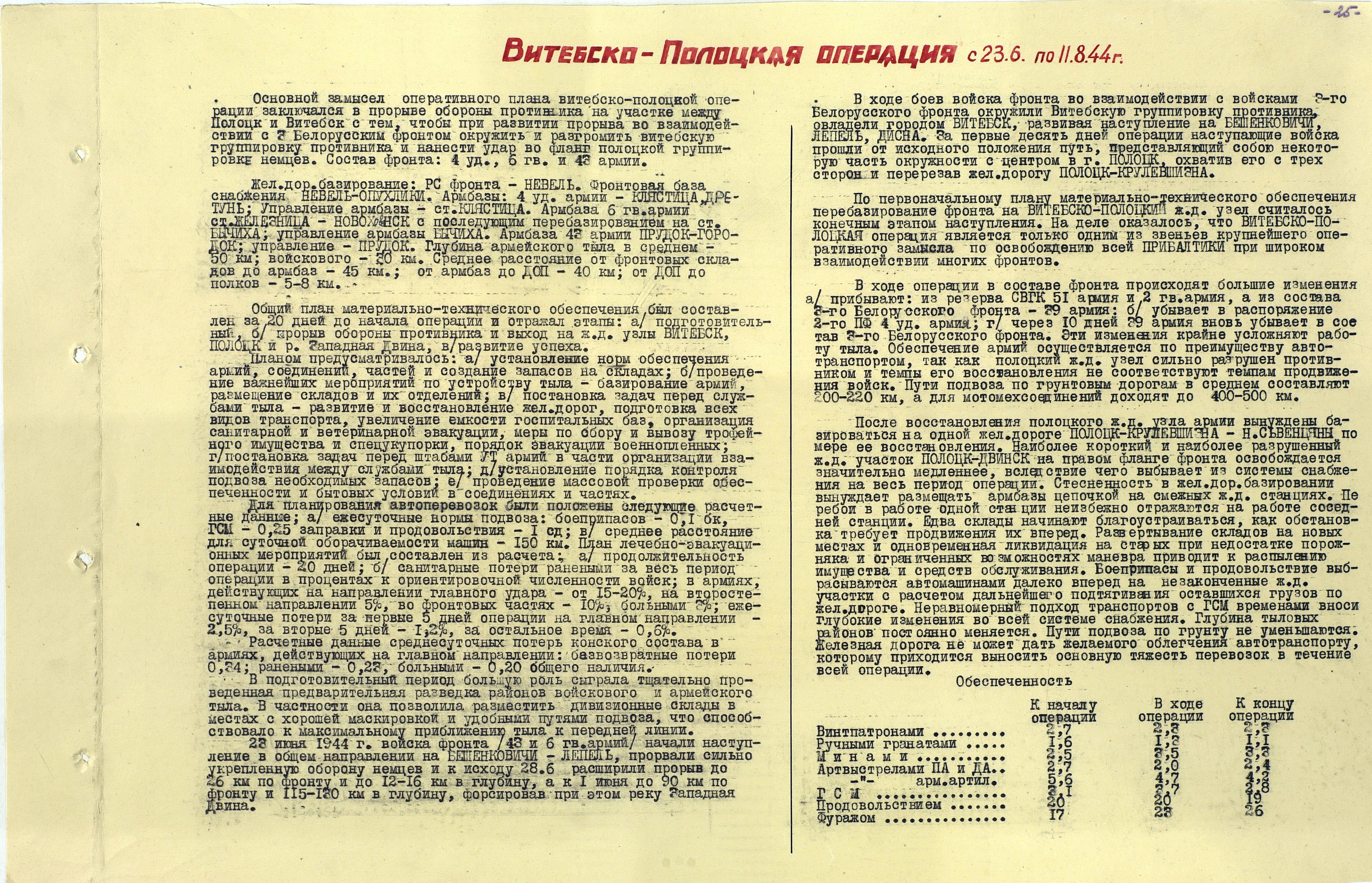 Материалы по устройству тыла 1 Прибалтийского фронта в сражениях Великой Отечественной