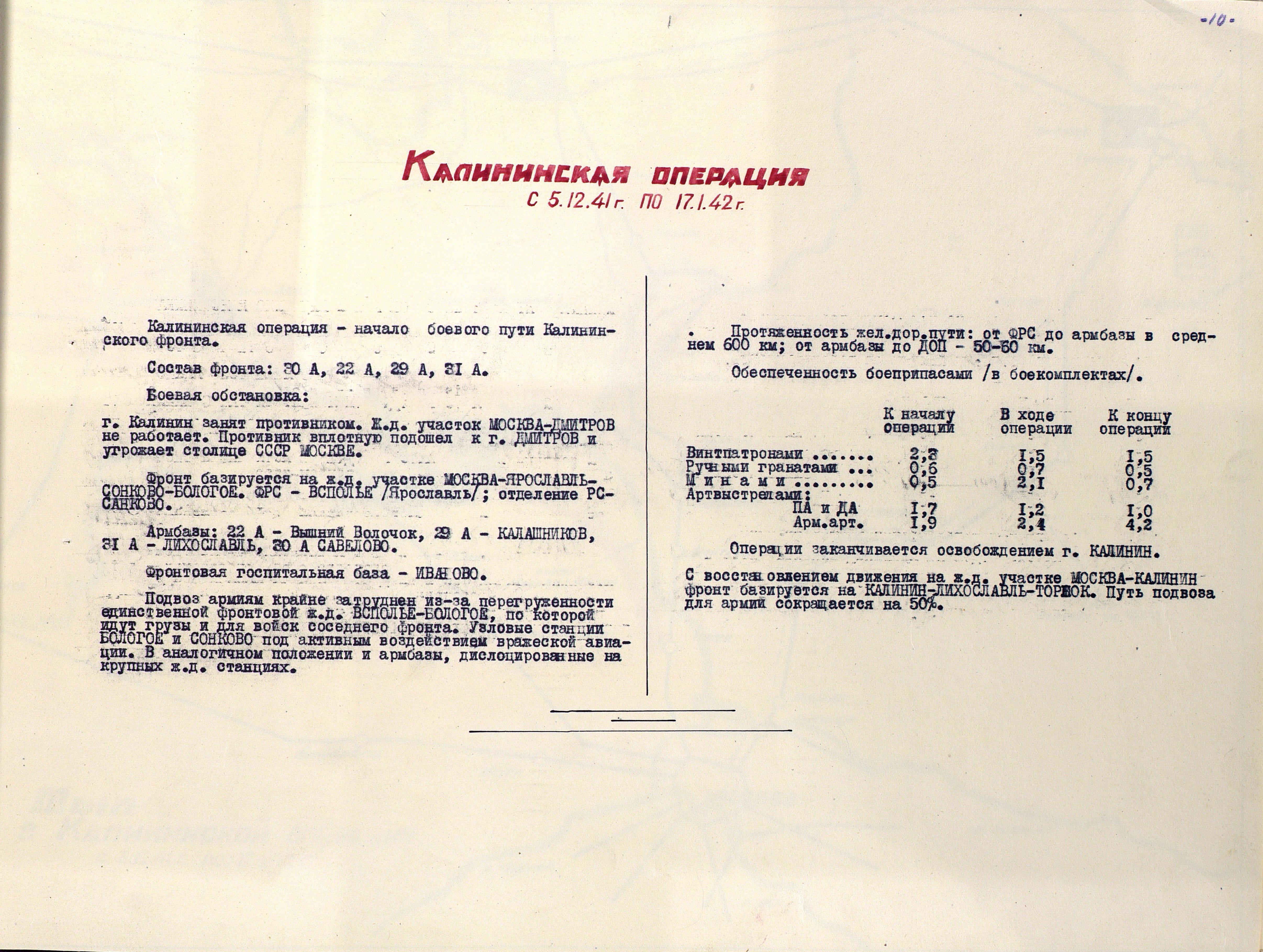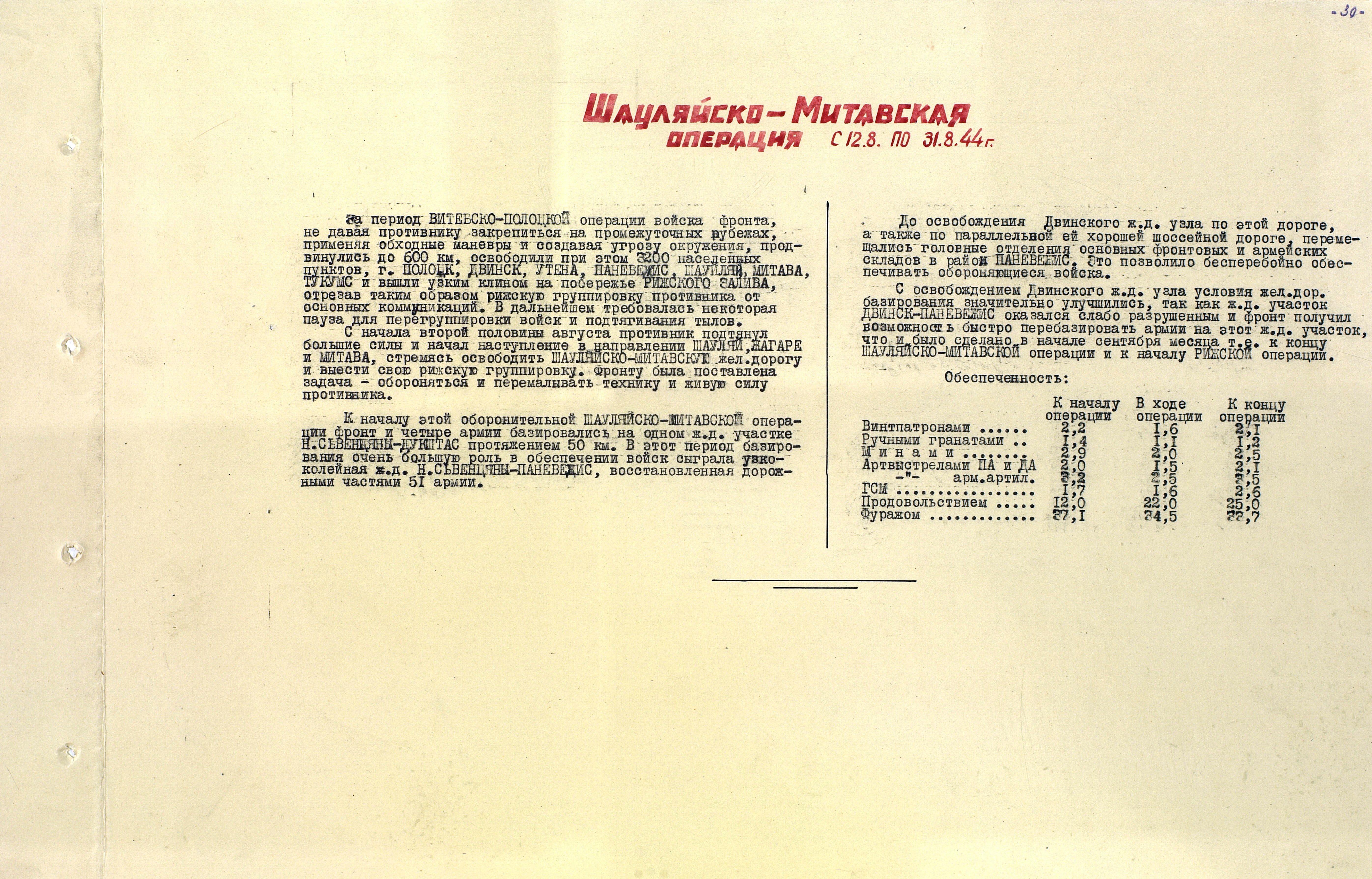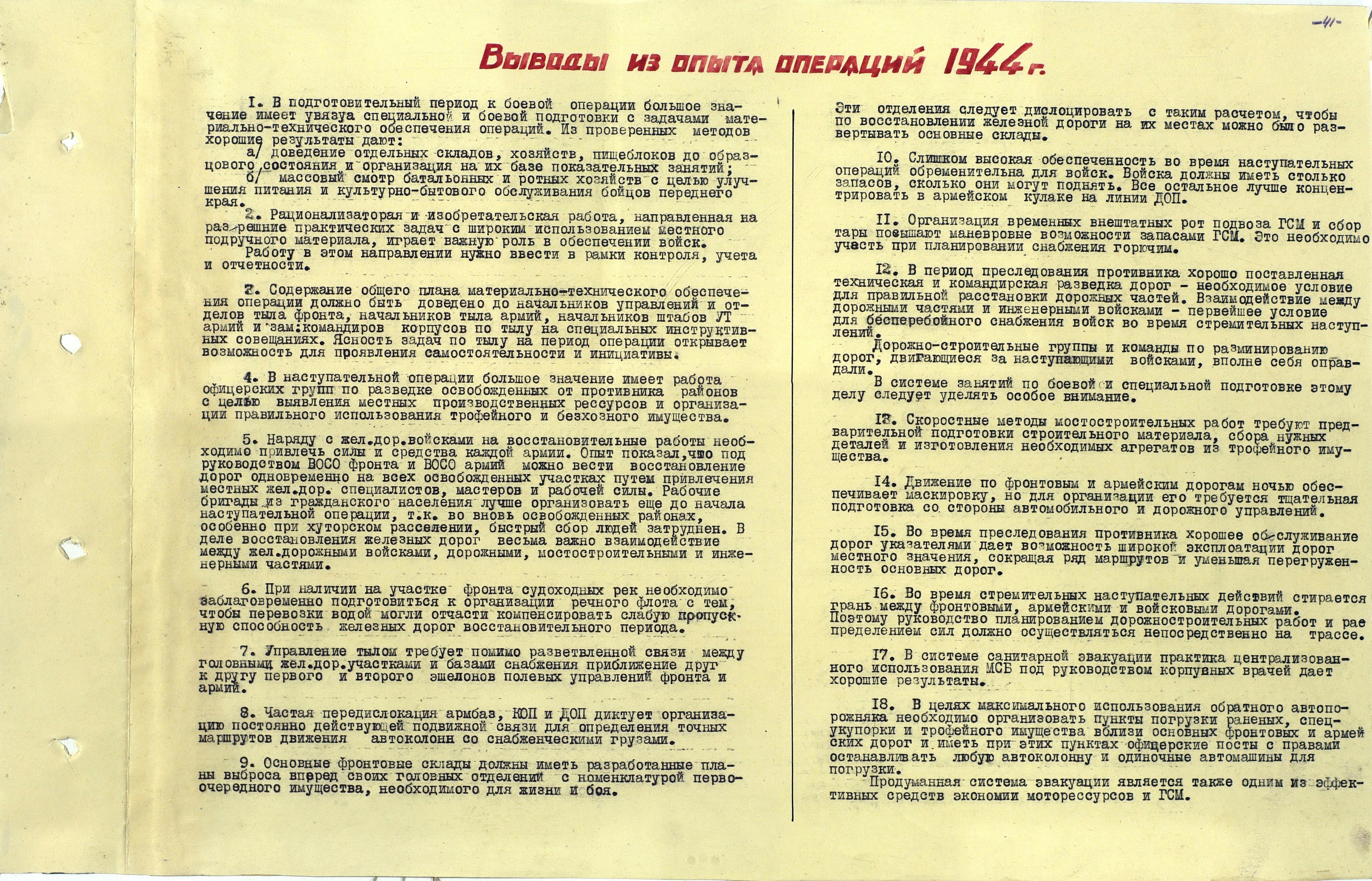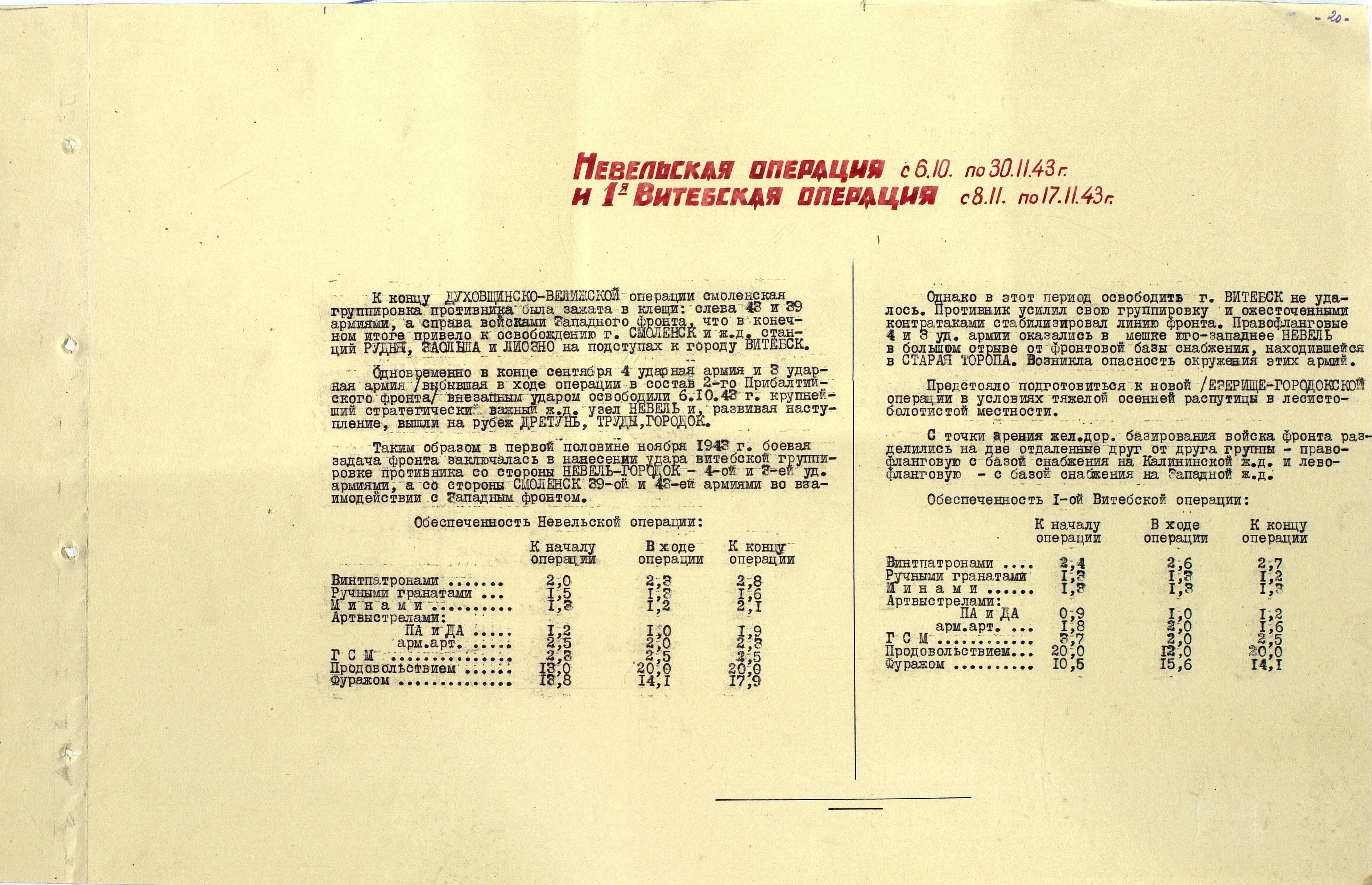 Материалы по устройству тыла 1 Прибалтийского фронта в сражениях Великой Отечественной