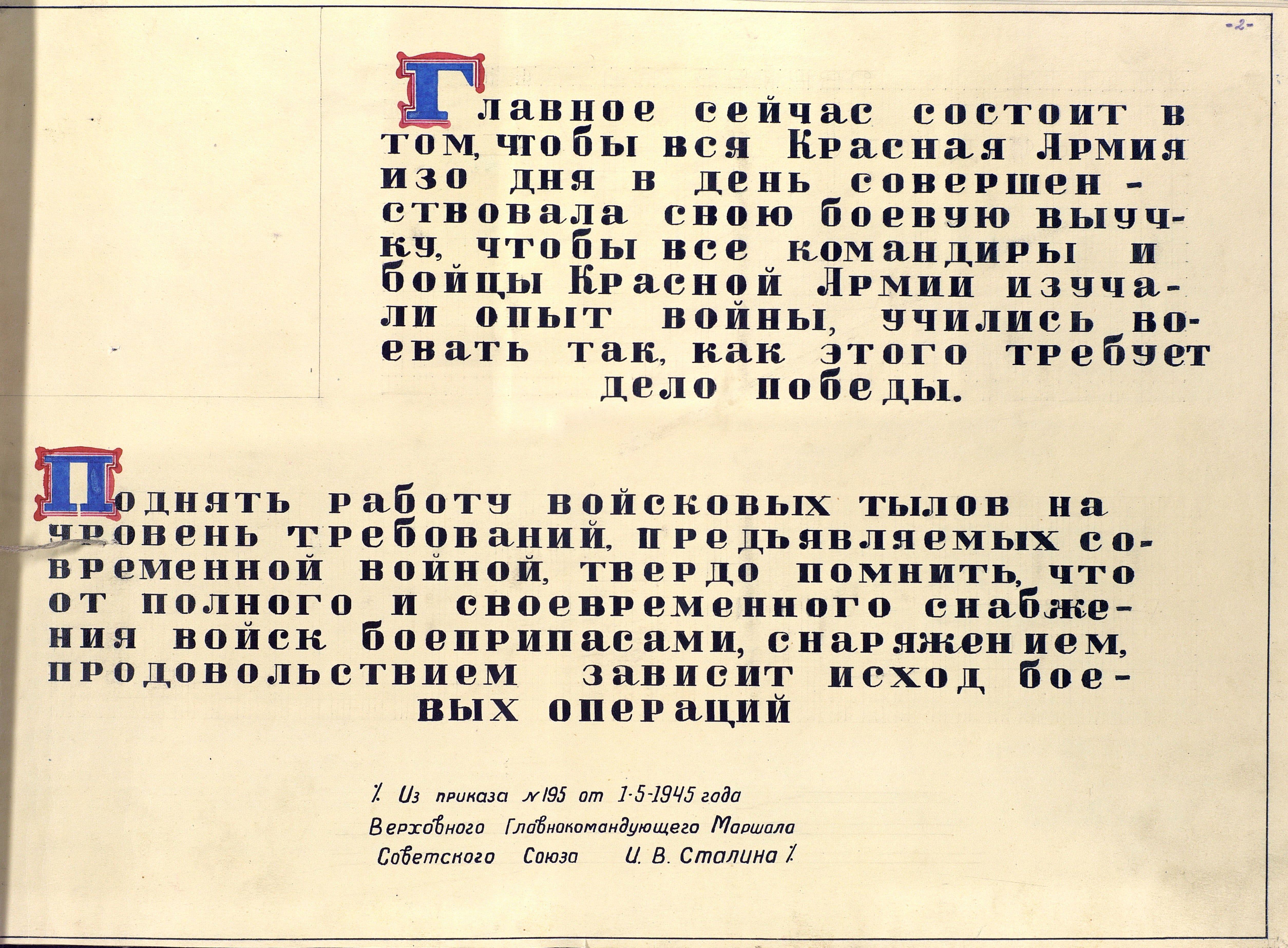 Своеобразным эпиграфом служат слова Верховного Главнокомандующего Маршала Советского Союза И.В. Сталина, посвященные сразу двум вопросам: боевой подготовке и войсковому тылу.