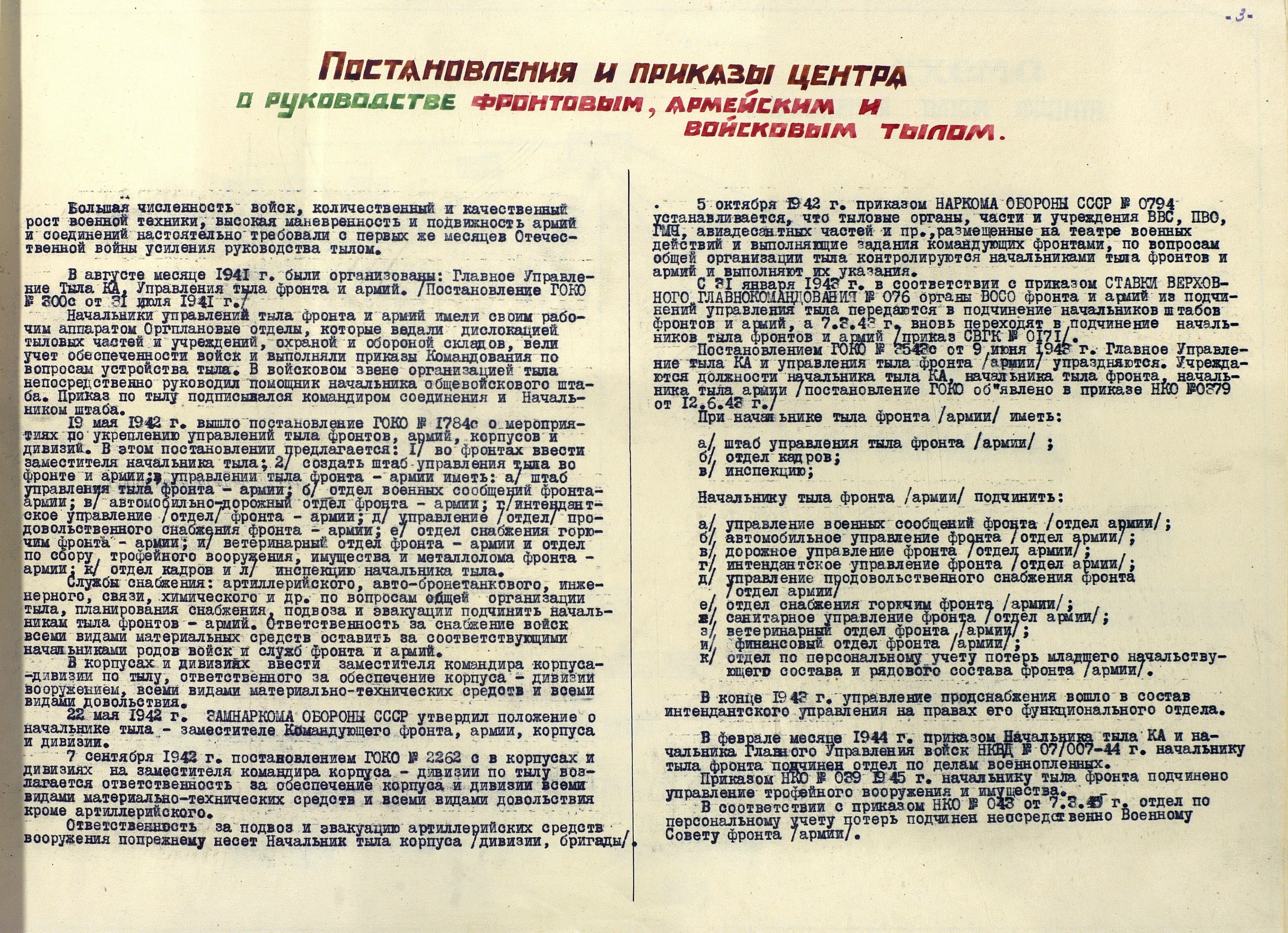 А дальше следует краткое изложение основных положений в части касающейся организации работы снабженческих структур, принципиальные схемы устройства фронтового, армейского и войскового тыла, сжатое описание работы тыла Первого Прибалтийского (ранее - Калининского) фронта за период боевого пути с декабря 1941 г. по апрель 1945 г.