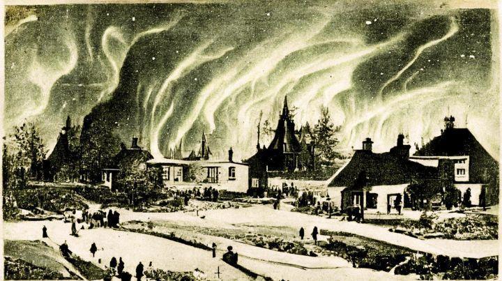 На этой картинке изображено то, что впоследствии получило наименование событие Каррингтона, по имени британского астронома, связавшего это явление с очень мощной солнечной вспышкой, которая отправила заряженные электроны и протоны в магнитное поле Земли.