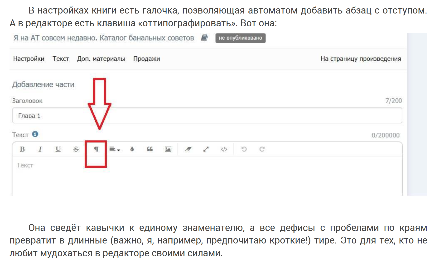 В принципе ничего. Это просто справочник — сборник советов, написанный живым языком со скринами для наглядности. Автор делится своим опытом публикации здесь, на АТ, вы можете спокойно всё разузнать сами и без этой книги. Тут просто много информации, и она вся в одном месте. Автор прекрасно разбирается в механике сайта, дает полезные подсказки. Многие вещи я реально не знал, хотя я обитаю тут очень давно)