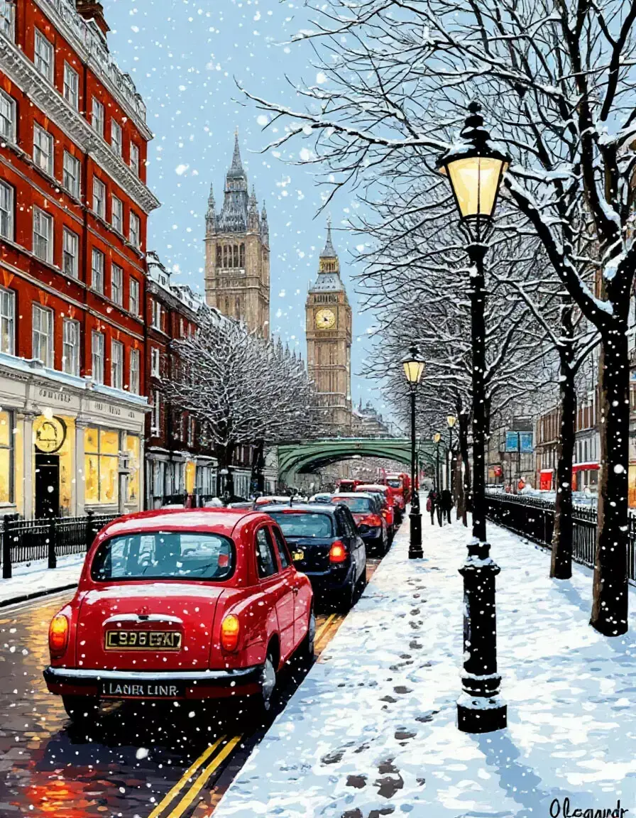 "Кружевное покрывало снега в уснувшем Лондоне"