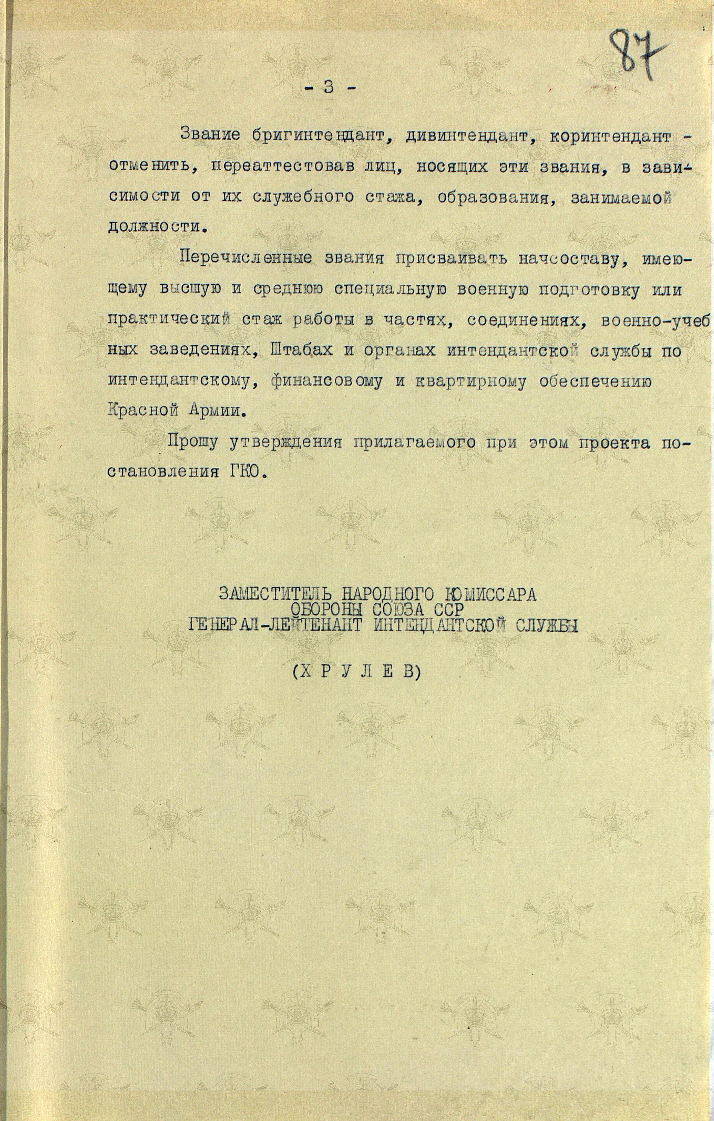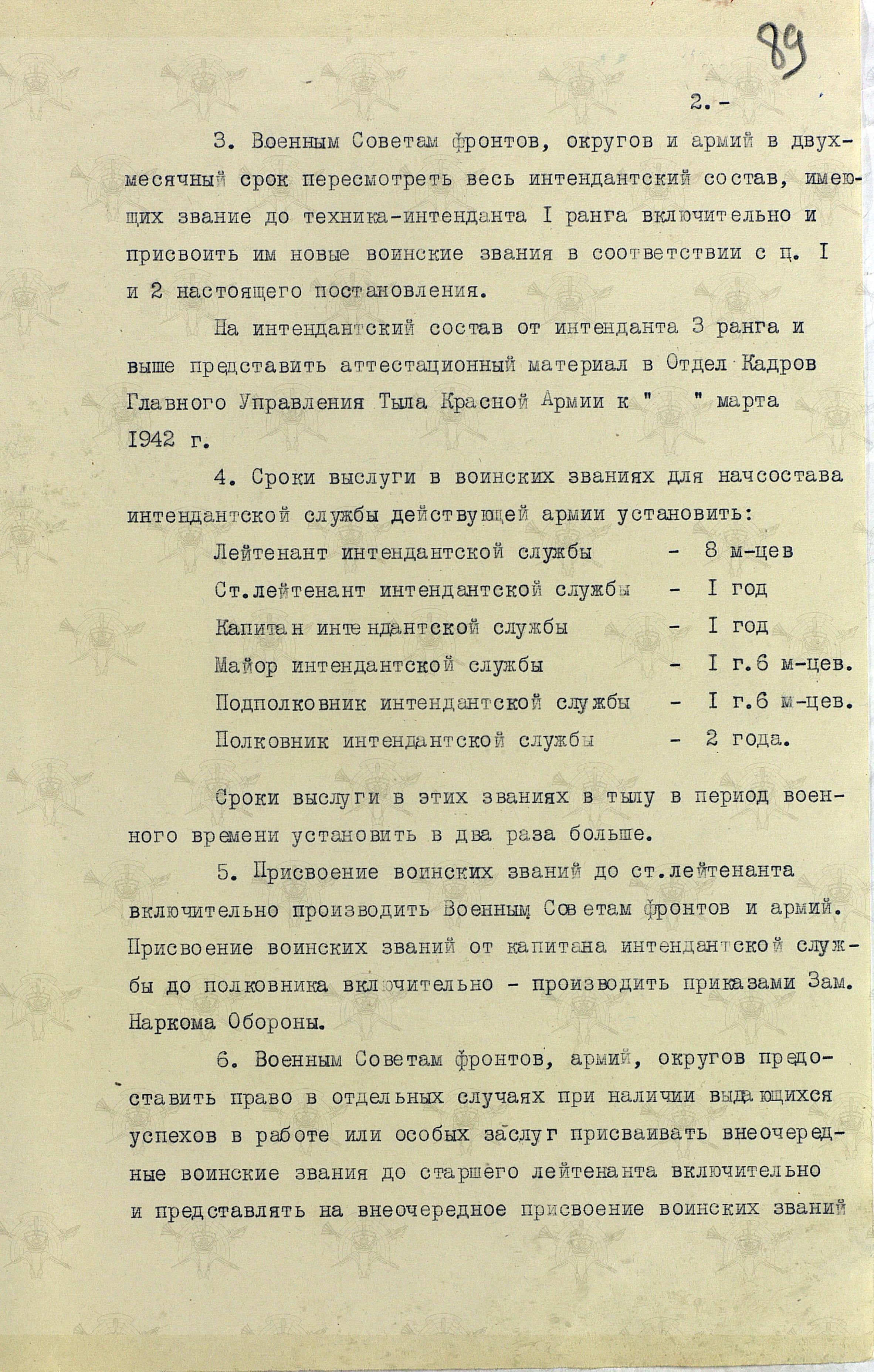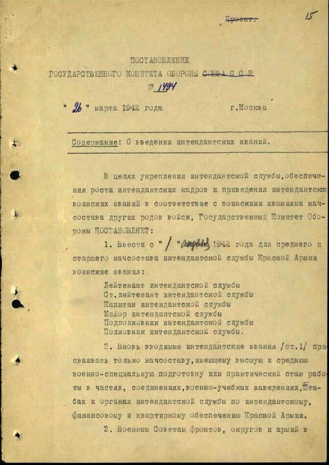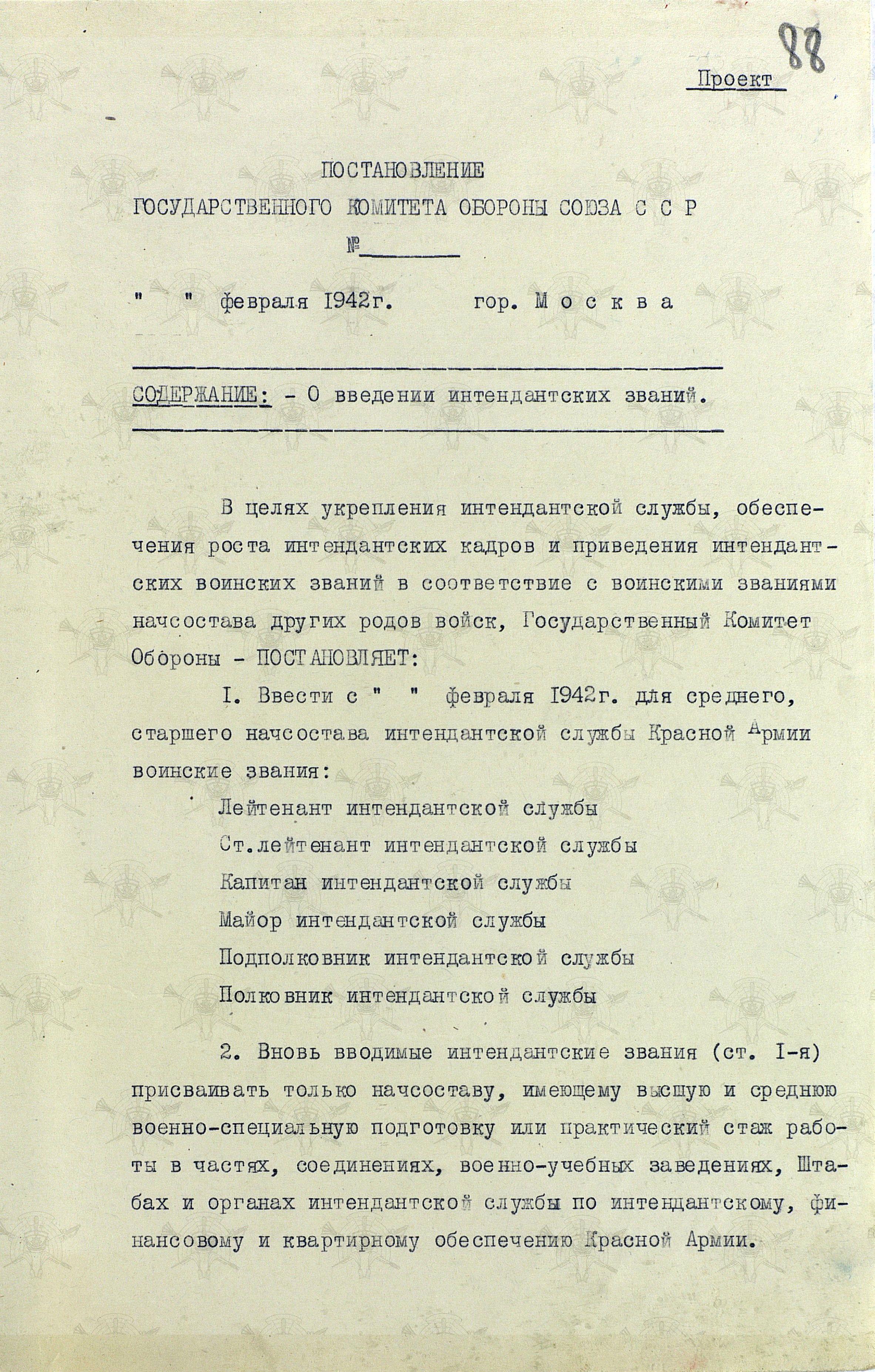 Рассмотрим постановление на примере нормативного акта о введении интендантских званий:
