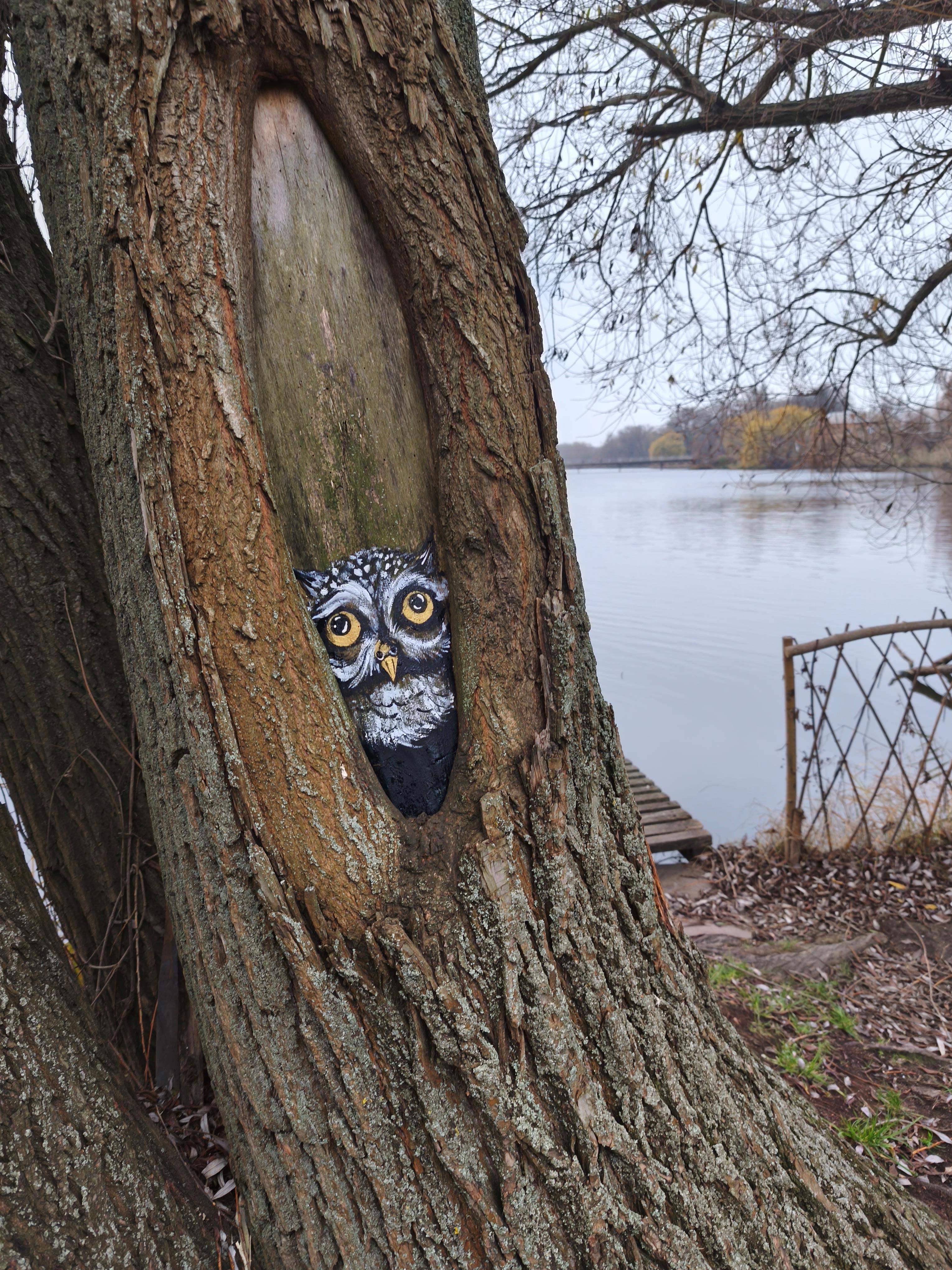 Проваленная попытка заполнить дупло совами. Пусть враги мои в такой сырости стоят на месте, я одну едва набросала, даже не проработала толком, смотрю — околеть можно, ну и бросила.