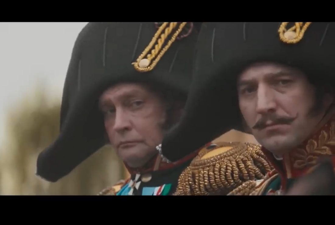 Последние кадры: Муравьёв-Апостол вновь в гвардии, стоит в первом ряду. Мимо них проезжает... император Константин 1 , а следом за ним едет Его Высочество Николай 1.