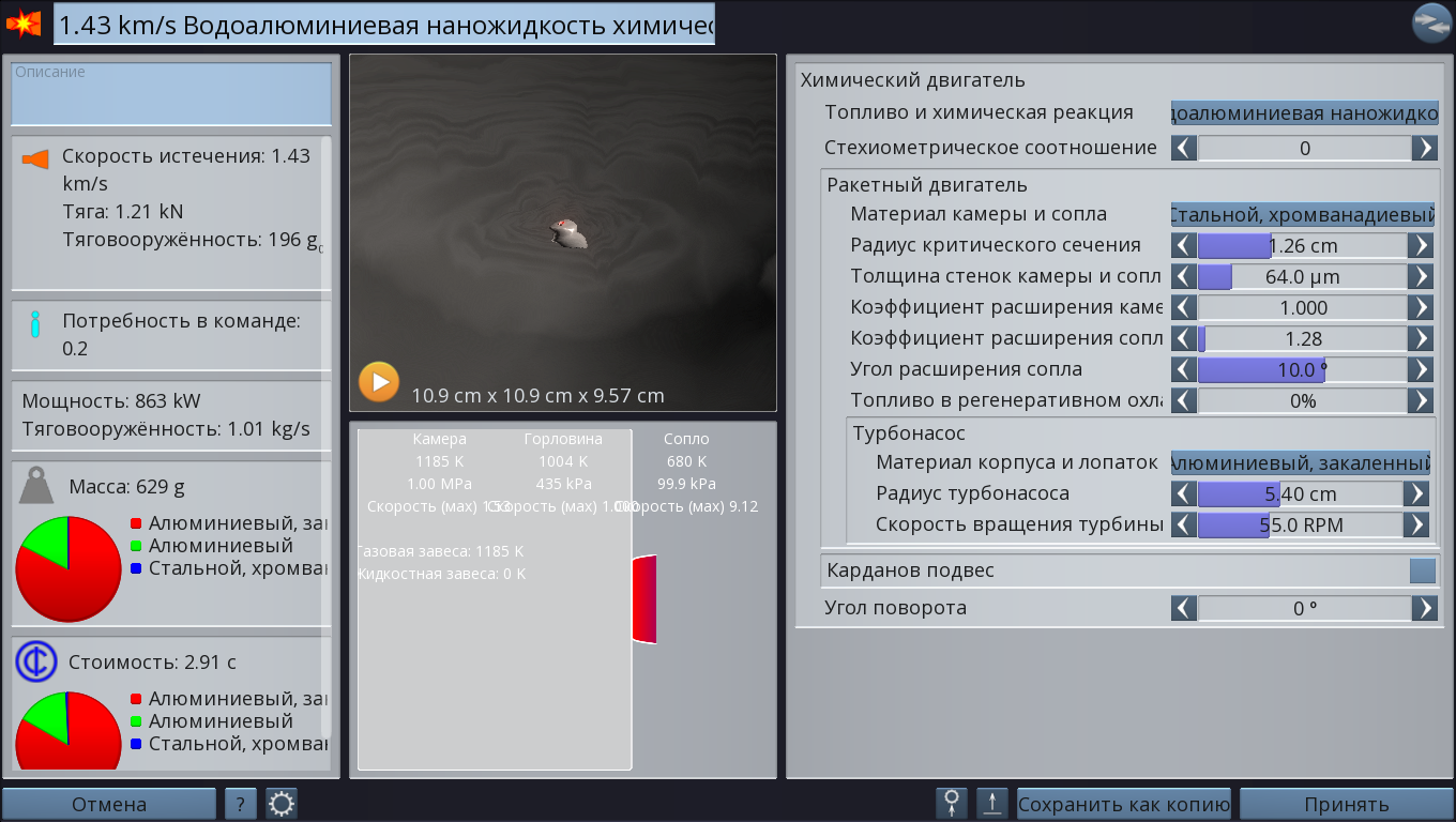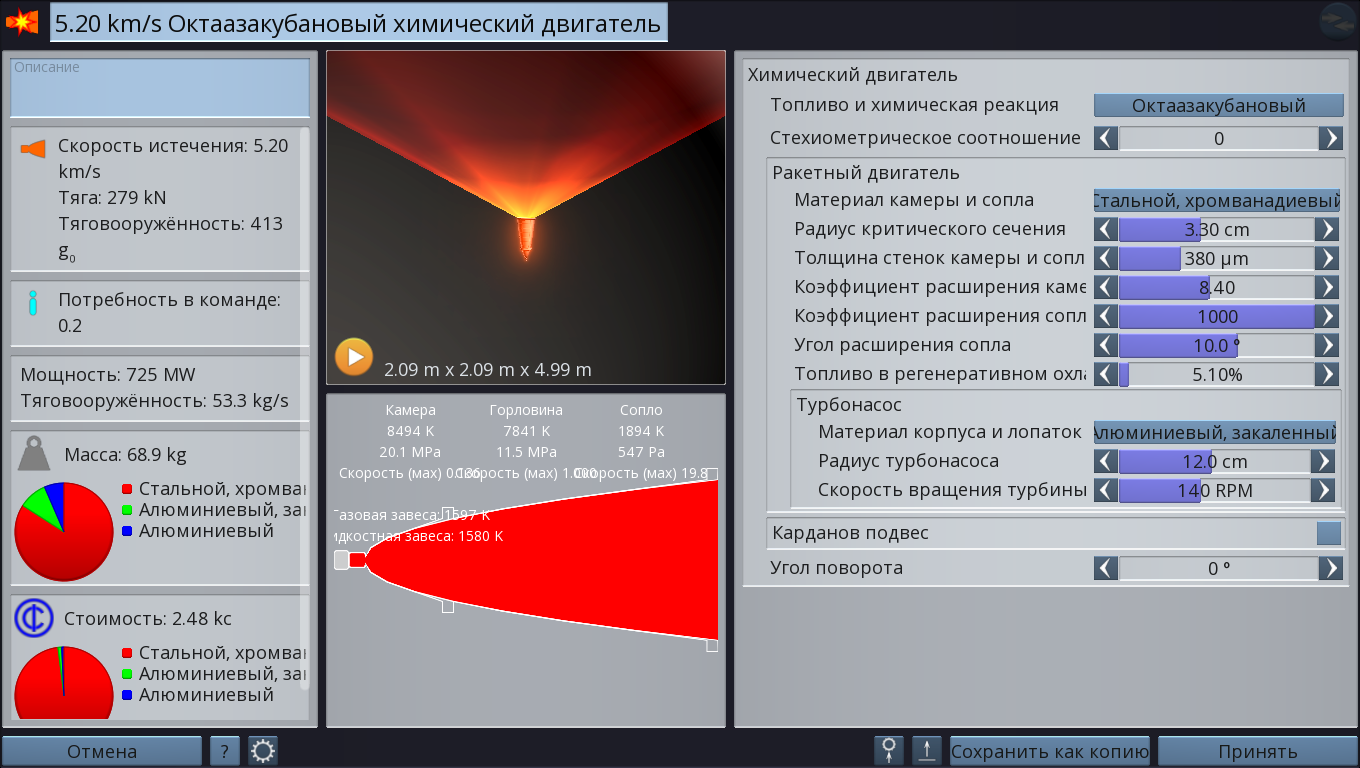 И это всё - при давлении в камере сгорания всего 1 мегапаскаль, который удержится почти любым конструкционным материалом.