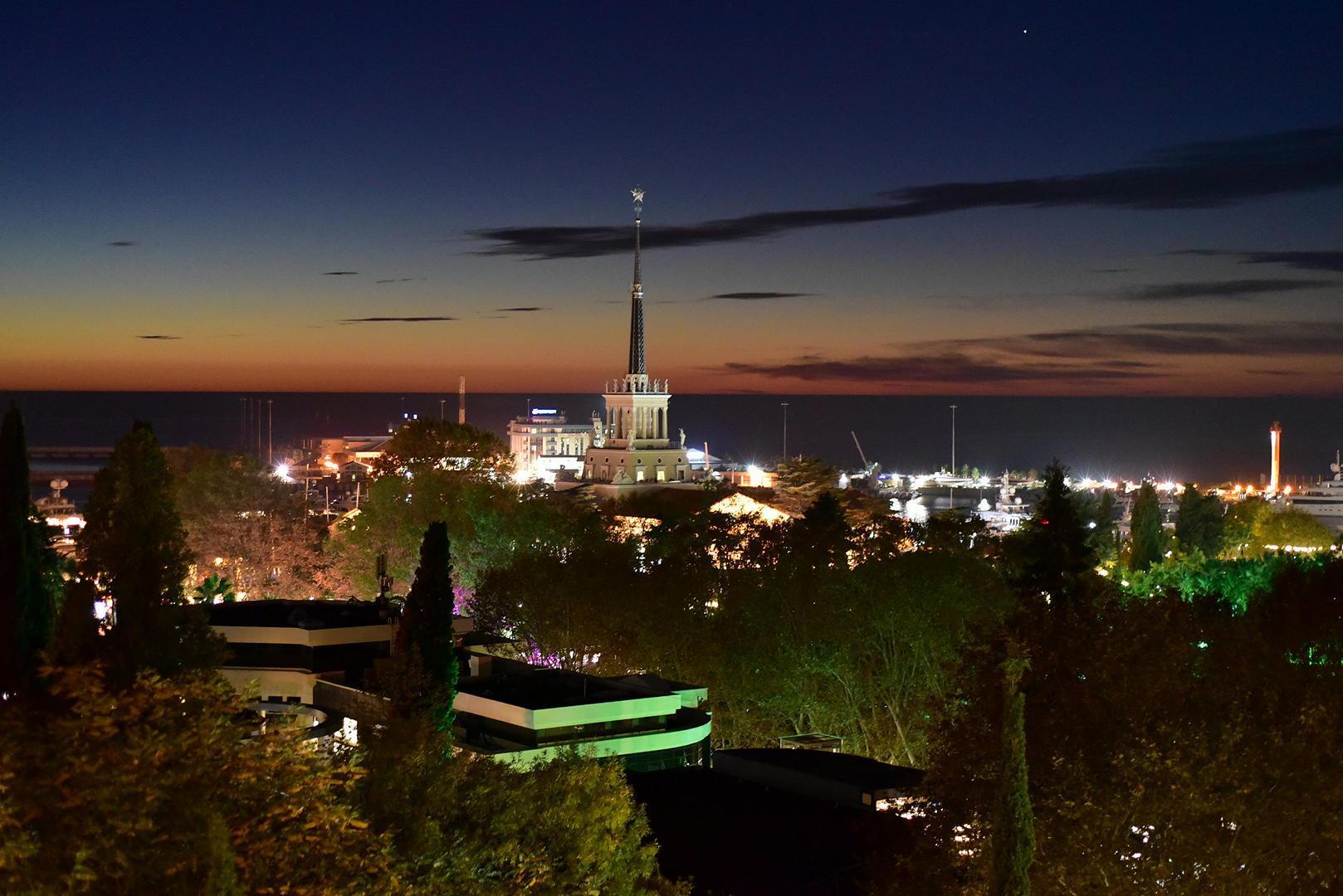А это уже Адлер - Имеретинская набережная, которая тянется на 7,5 км, аж до границы с Абхазией. А вдали Одимпийсий стадион.