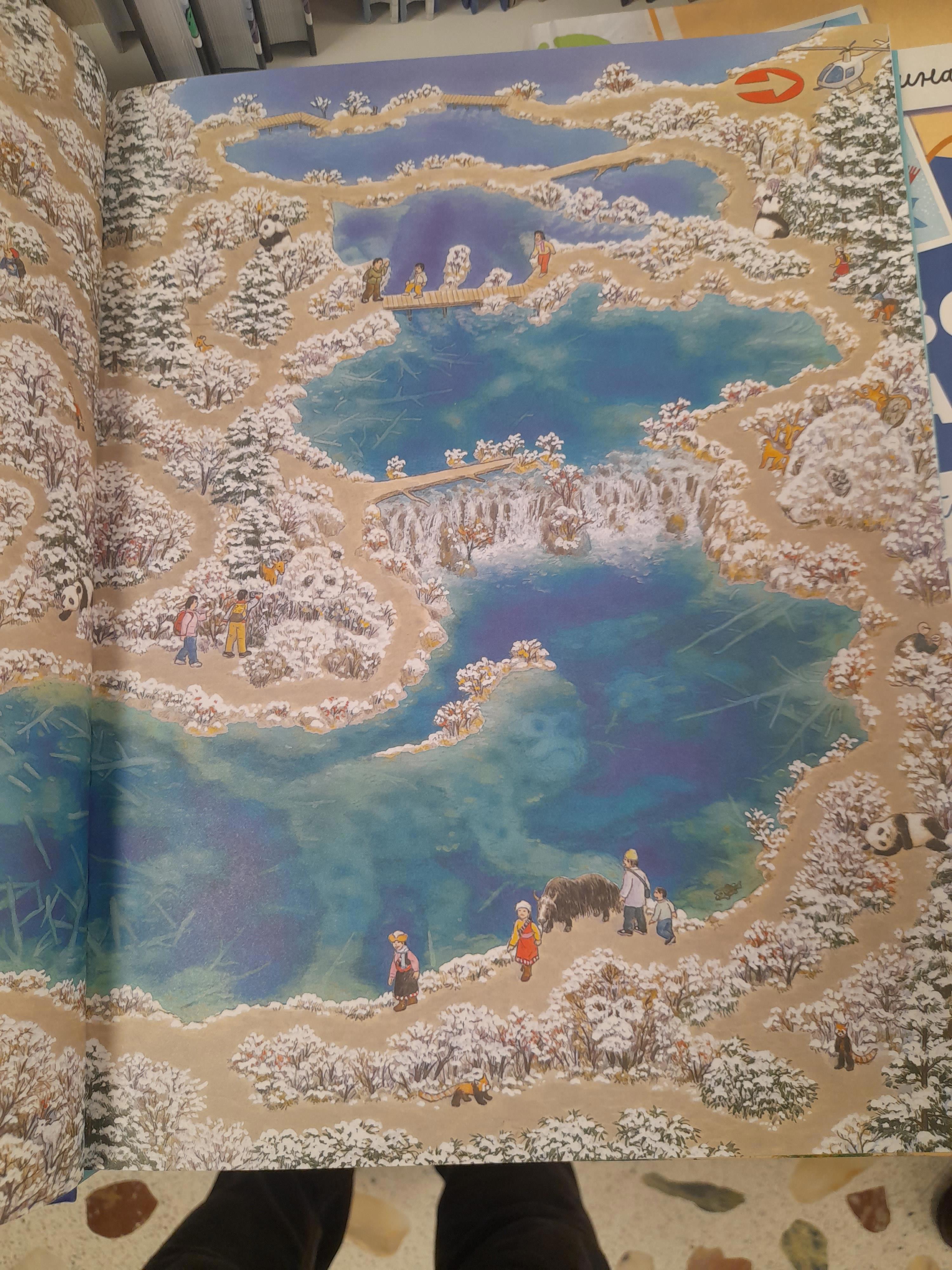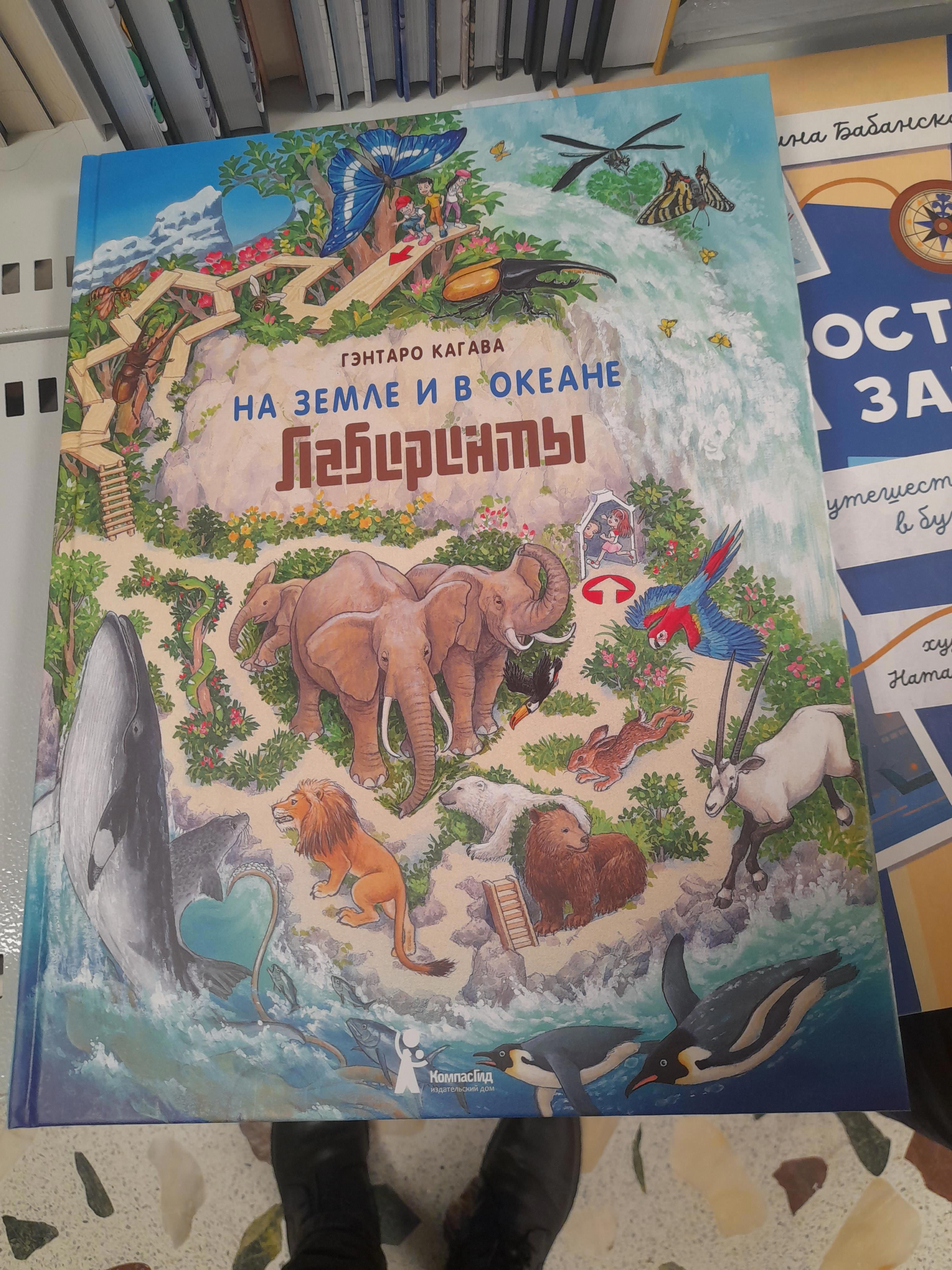Наткнулся случайно на книжном фестивале и буквально прилип. Это такая интересная книжка, рассчитанная как мне кажется на старшую группу детского сада и начальную школу, первый-второй класс (в аннотации для среднего школьного возраста, но не верьте). Разные уголки мира с природой и животными, оформленные в виде лабиринтов. Эдакое сочетание энциклопедии о природе, виммельбуха и развивающей книжки. При этом с консультациями ряда учёных-биологов и разными заданиями на отдельном поле сбоку к каждой картинке-лабиринте, так что всё-таки энциклопедия. Ну и просто очень красиво сделано, буквально завораживающе.