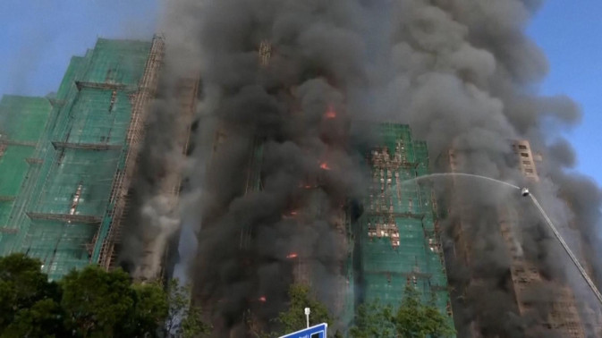 Пишут про бамбуковые леса - на фотографиях все выглядит так, словно они полностью бамбуковые, да еще и затянуты зеленой пластиковой сеткой. Добавляет понимание скорости и интенсивности пожара то, что есть сообщения об использовании в качестве тепло-звукоизоляции пенопласта. С точки зрения пожарной безопасности - выбор - огонь. Горит быстро, плавится, расплав отлично течет, продолжая гореть, выделяет всякое, для здоровья и жизни не полезное.