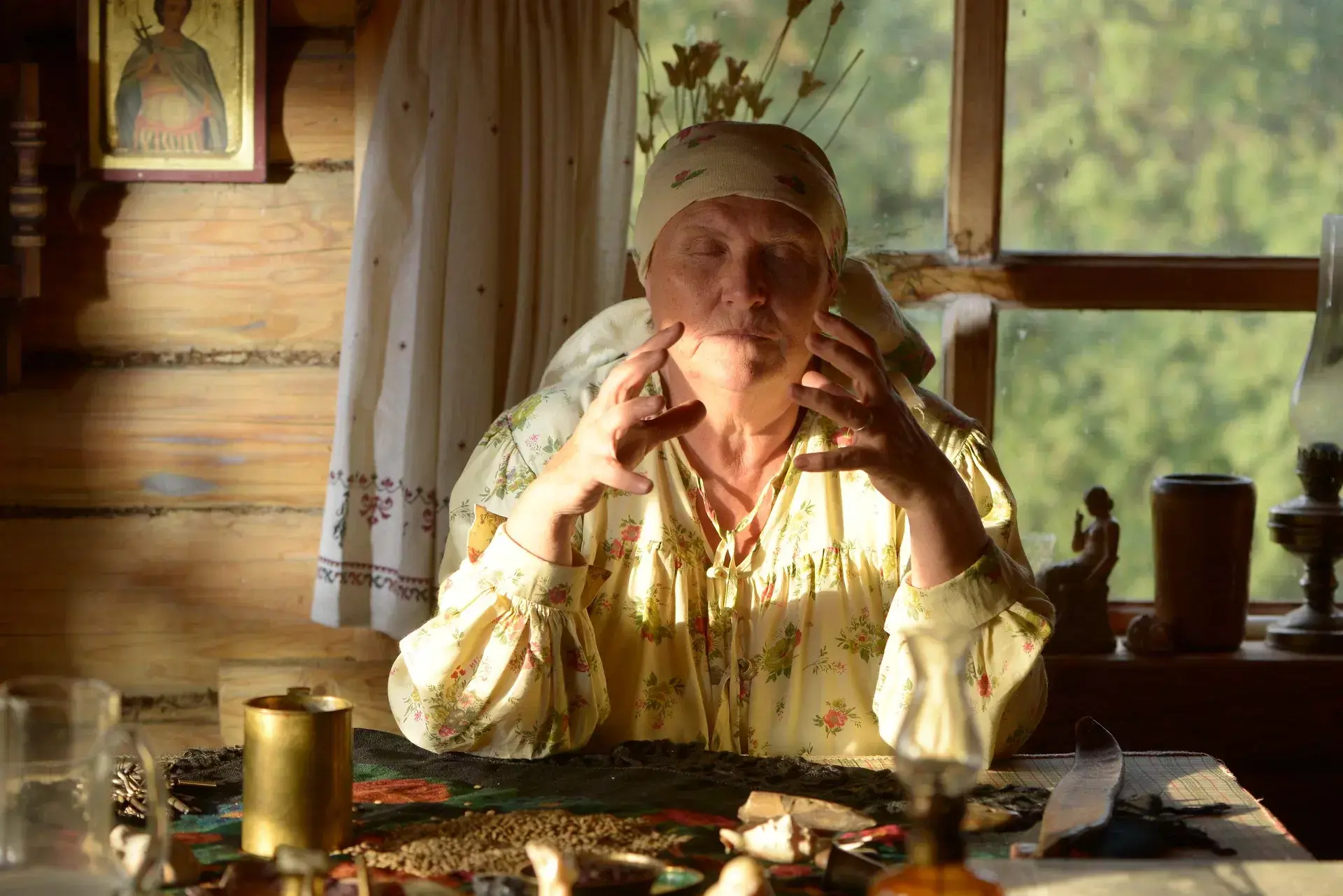 Соседка, толкующая о том, что вот рядом живёт знахарка, что лечит молитвами? Привороты-отвороты-заговоры-пляски с бубнами и пр.?