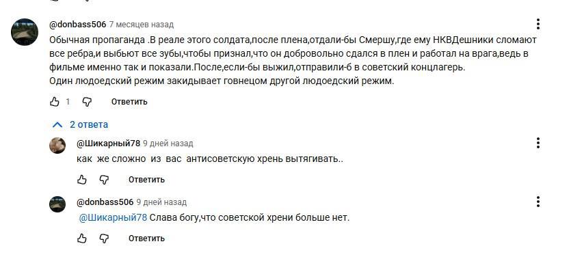 У нас же, начиная с перестроечной «Охоты на единорога», продолжая «майорами Пугачёвыми» и прочей хренью изображали контрразведчиков мразями, жаждущими посадить невиновного. Никому не интересно было показать работу особистов по проверке бывших пленных как сложный труд умных людей. А некоторые верили и хавали! в результате полно дегенератов в комментариях к видео на военные фильмы, таких как эти.