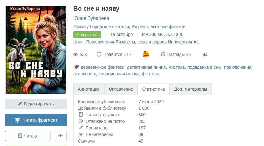 Автор: Юлия ЗубареваУра, дорогие мои. Сегодня я прошла психологический рубеж, до которого и не мечтала добраться. Лизавета с козой набрали 1000 библиотек и это значит, что книжка не так и плоха, как кажется их авторке)))