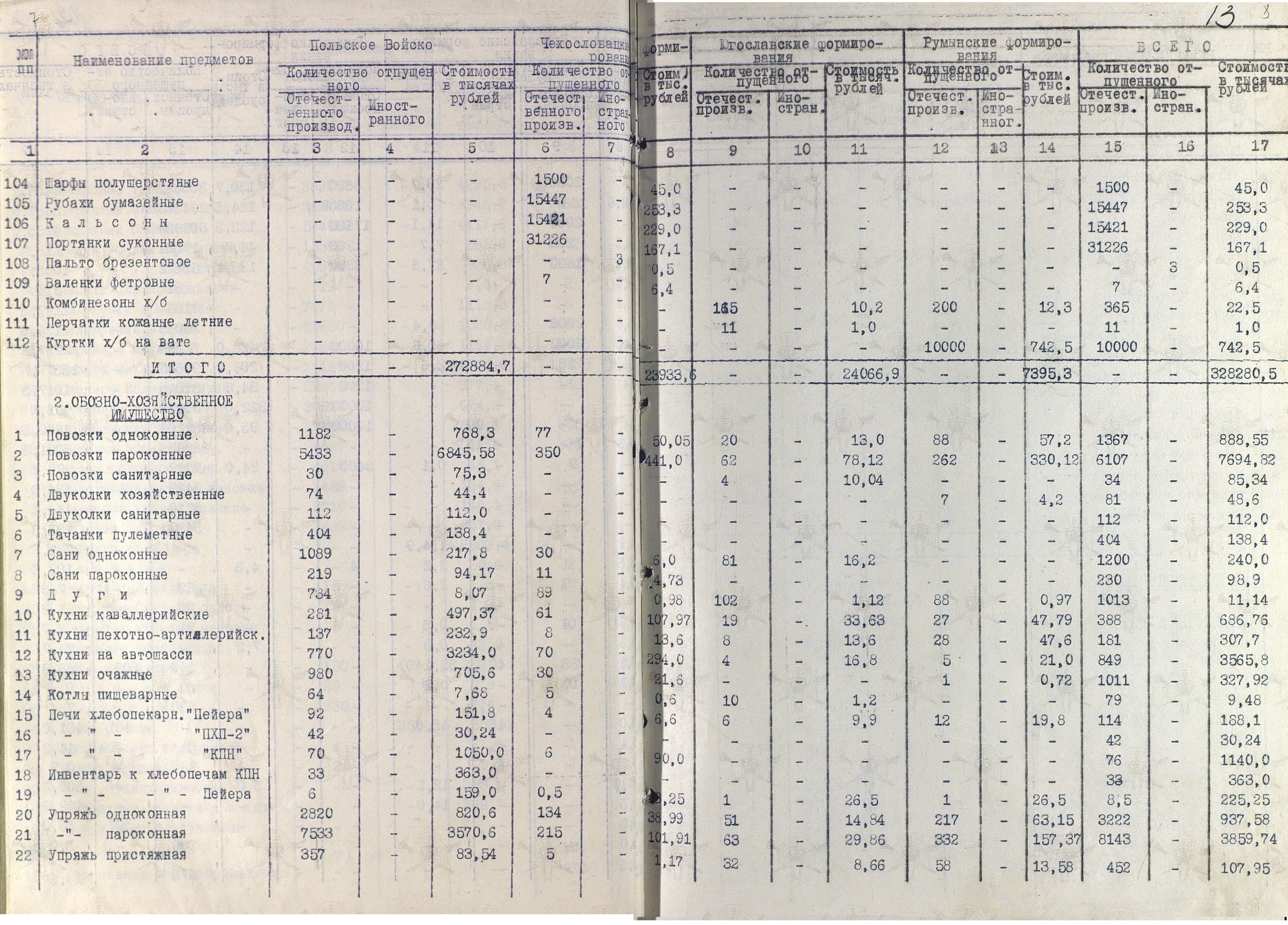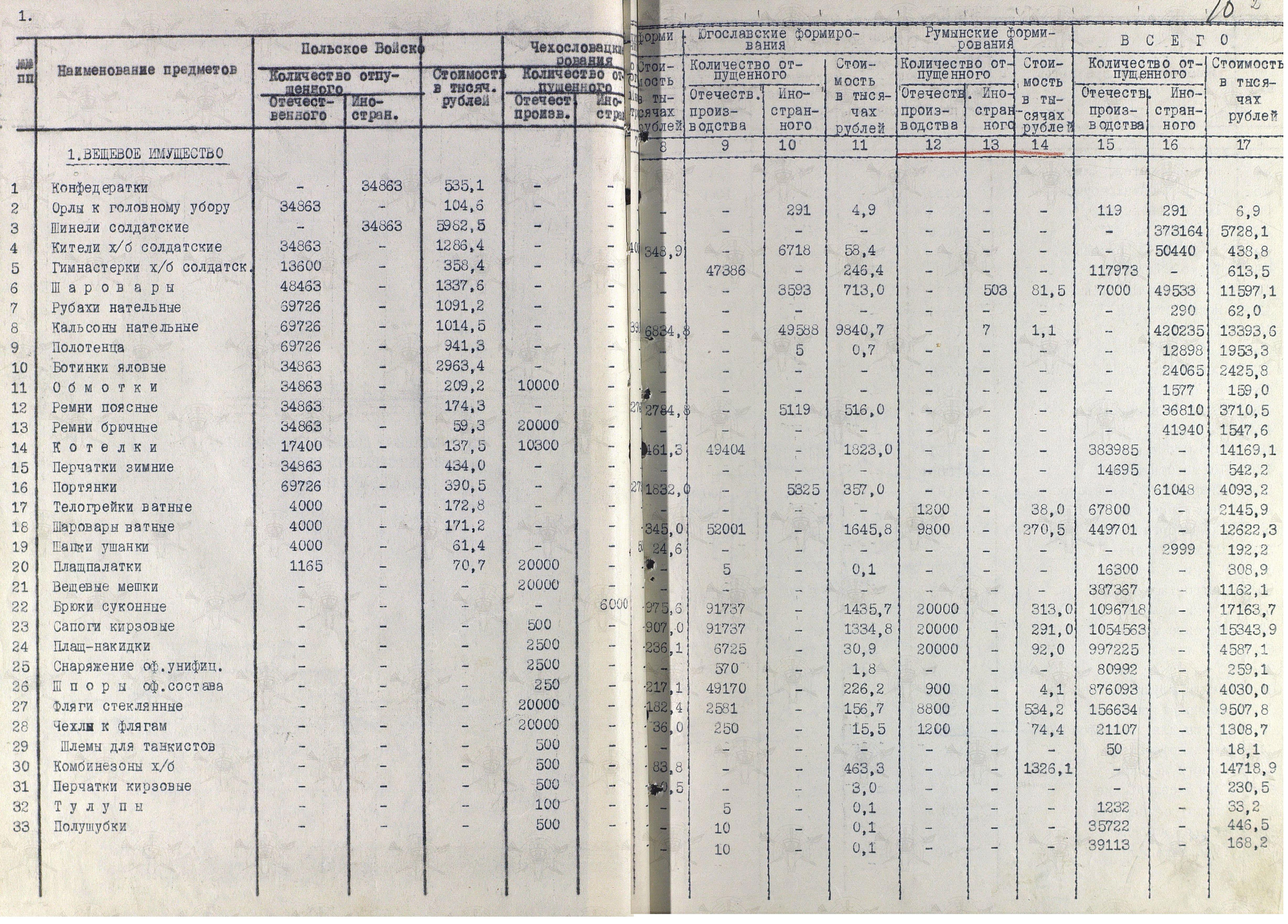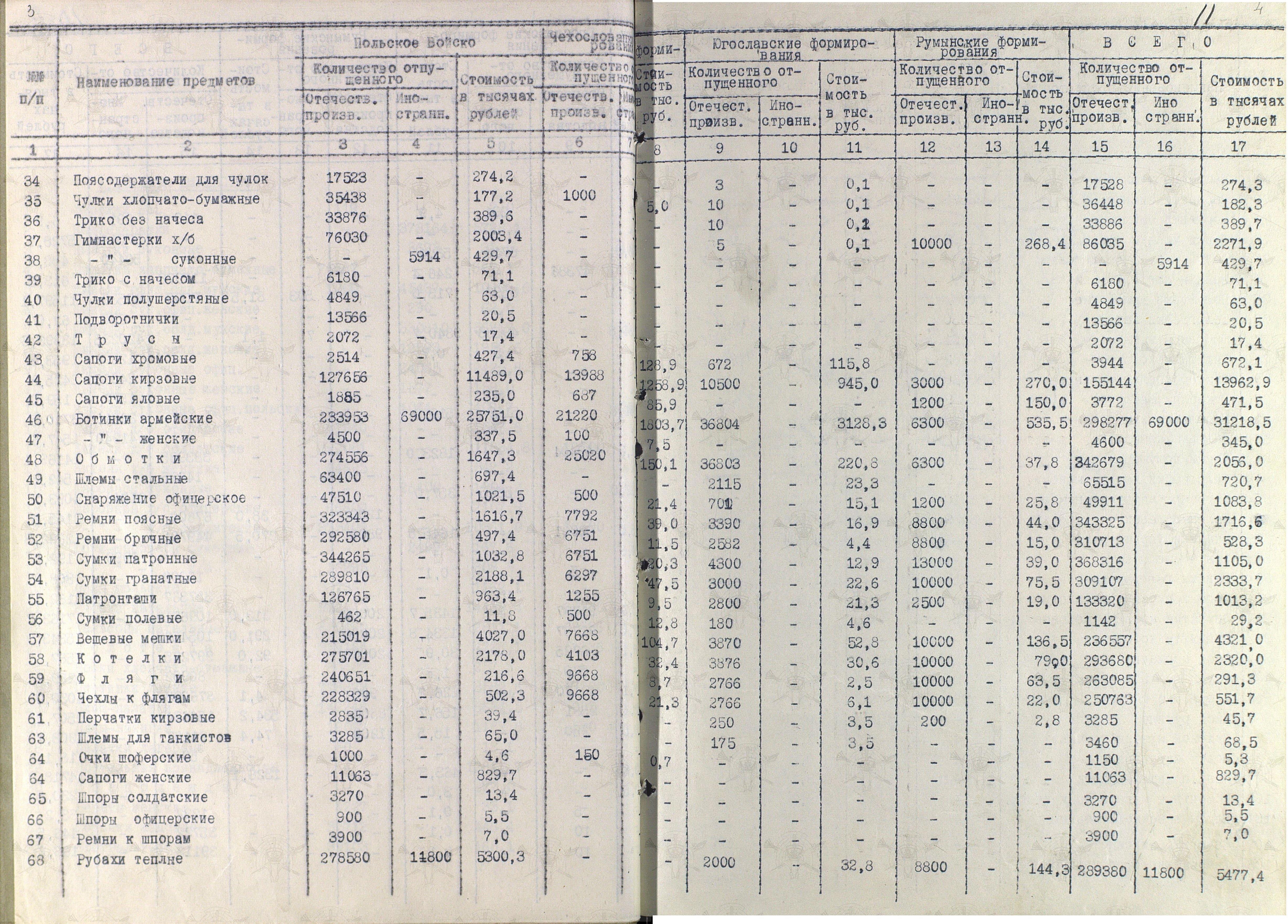 можно посчитать и общие затраты на содержание этих армий. Конечно, итоговые данные будут не полные, нет сведений о количестве поставленного вооружения, военной техники (за исключением автомобильной), средств войск связи, инженерных войск и ряда других;