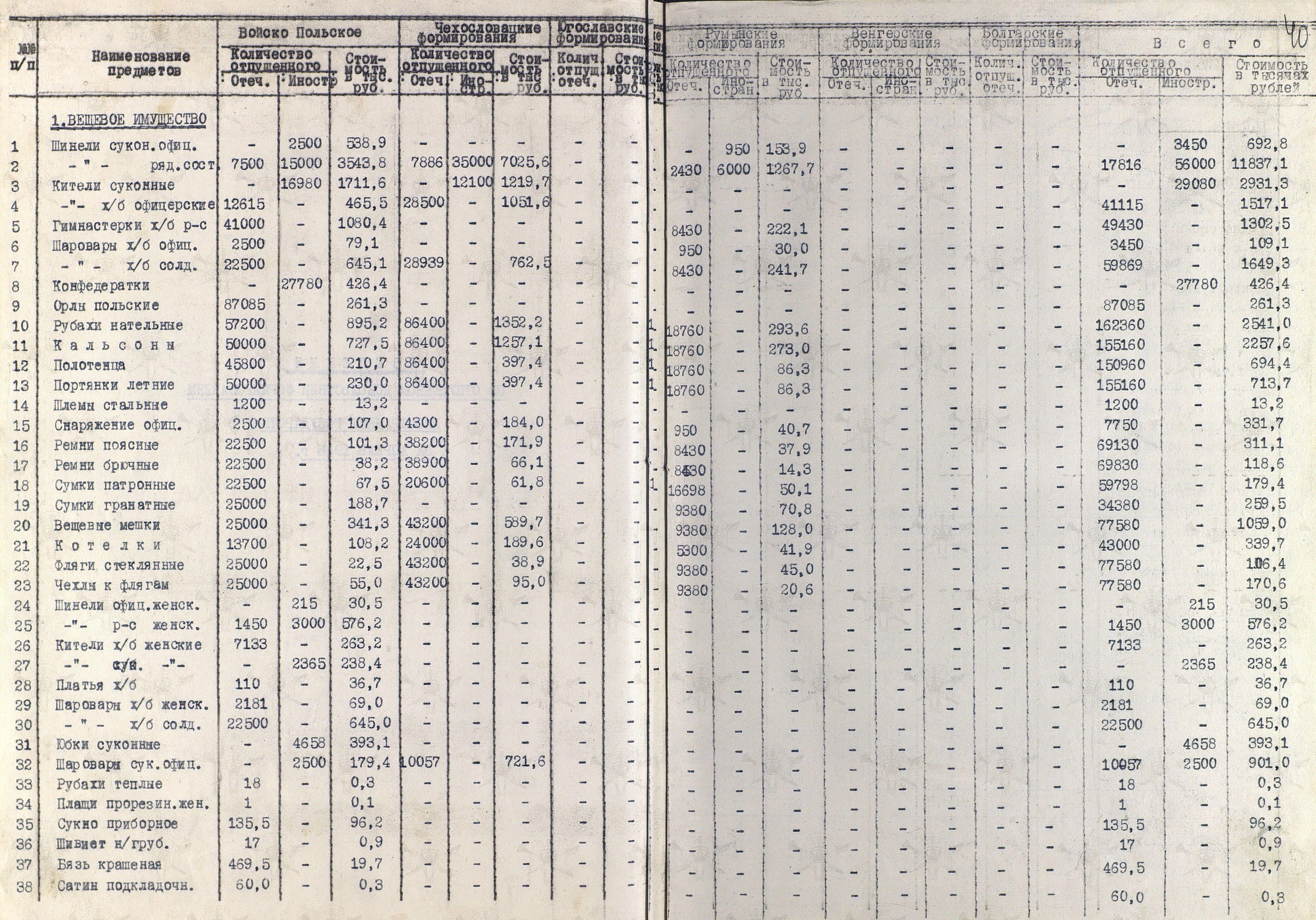 Помнится, когда мы обсуждали снабжение формируемых на территории СССР чехословацких частей, пообещал выложить сводные материалы на все иностранные формирования, обеспечиваемые Советским Союзом во время Великой Отечественной войны и даже в течение нескольких месяцев по её окончании.