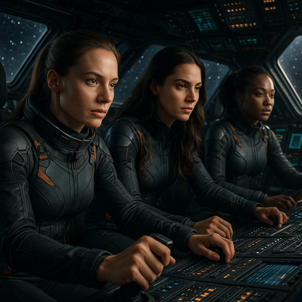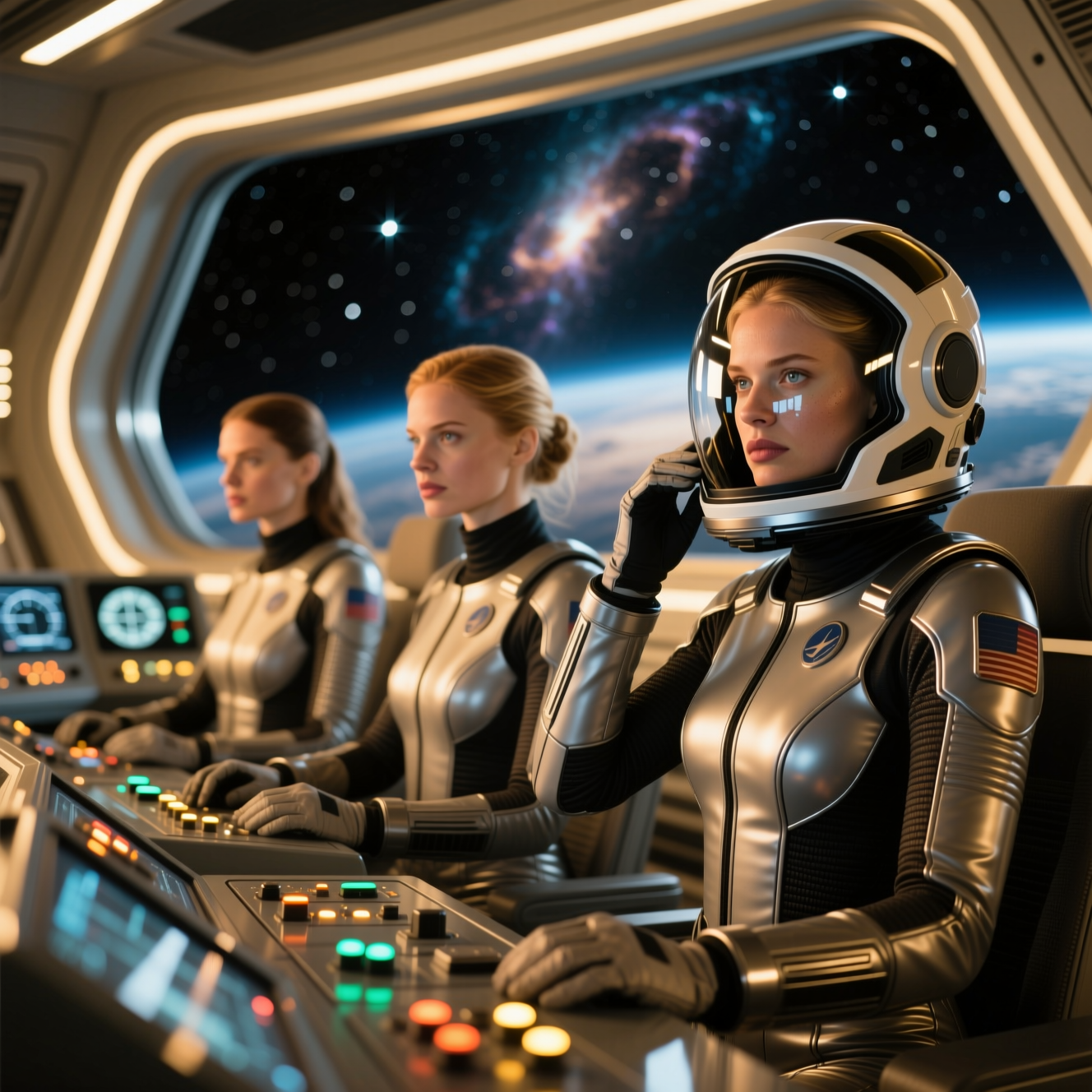 До этого момента была попытка изобразить робота, под управлением нейросети. Ну а теперь попытка изобразить именно девушек.