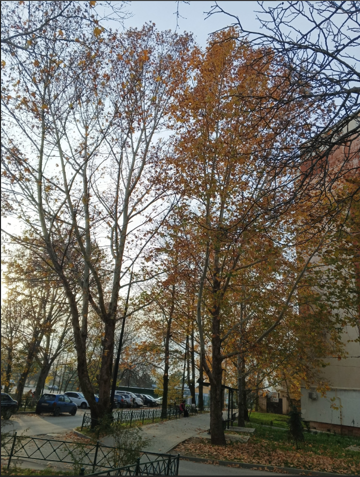А потом была улица. И деревья. Листва ещё не облетела, но деревья уже прозрачные, солнце светит сквозь крону практически не встречая сопротивления листвы.
