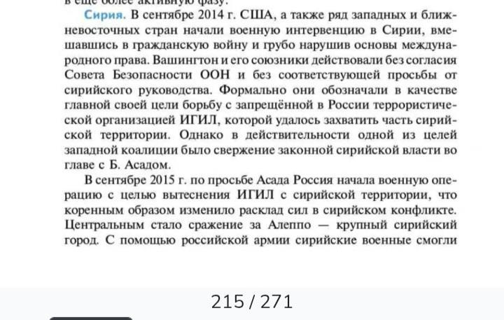 Рис. Как всё начиналось в Сирии, по версии Мединского. Чем всё закончилось для России - историк не пишет. Ибо учебник вышел раньше, чем Асад сбежал в Ростов. К Януковичу на подселение....