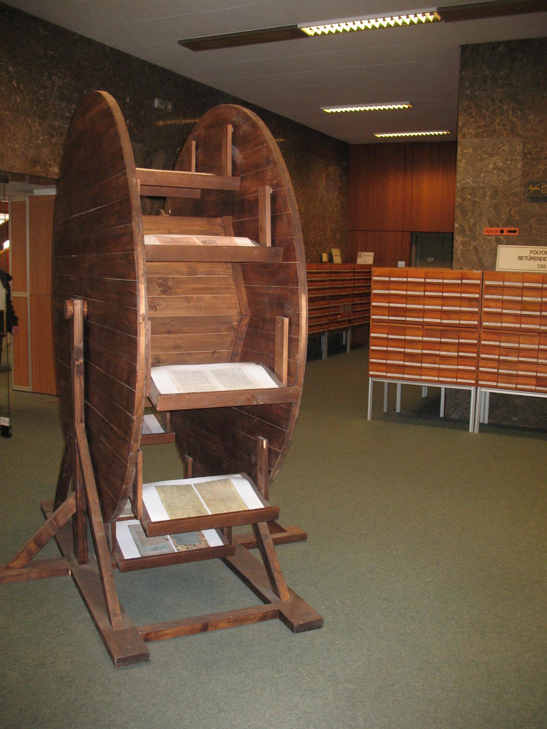 Но вернемся все же к книгам. С помощью такого приспособления можно было читать сразу несколько документов — удобно и практично и не надо думать, как же разместить на столе для работы несколько книг.