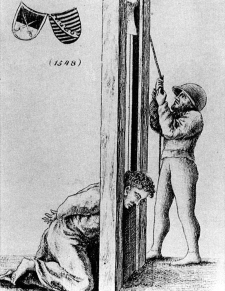 В данном случае — Германия. Но не думайте, что это устройство применялось только там. Нечто подобное существовало и в Шотландии, и в Италии. В XIII веке в Неаполе с помощью вот такого приспособления был казнен 16-летний король Иерусалима и Сицилии Конрадин.
