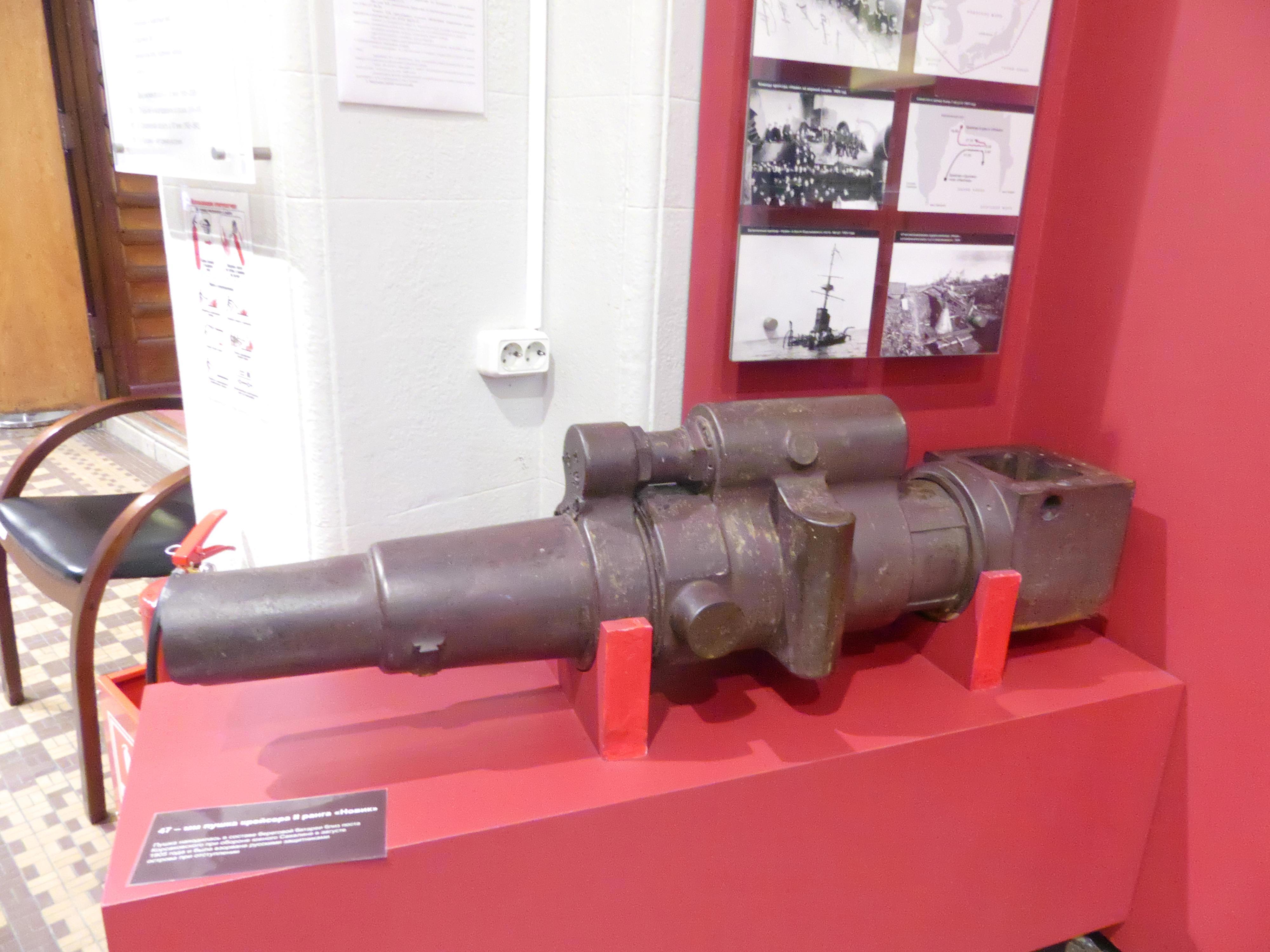 Пушка крейсера "Новик" времен русско-японской войны 1904-1905, проходившей и на Сахалине.