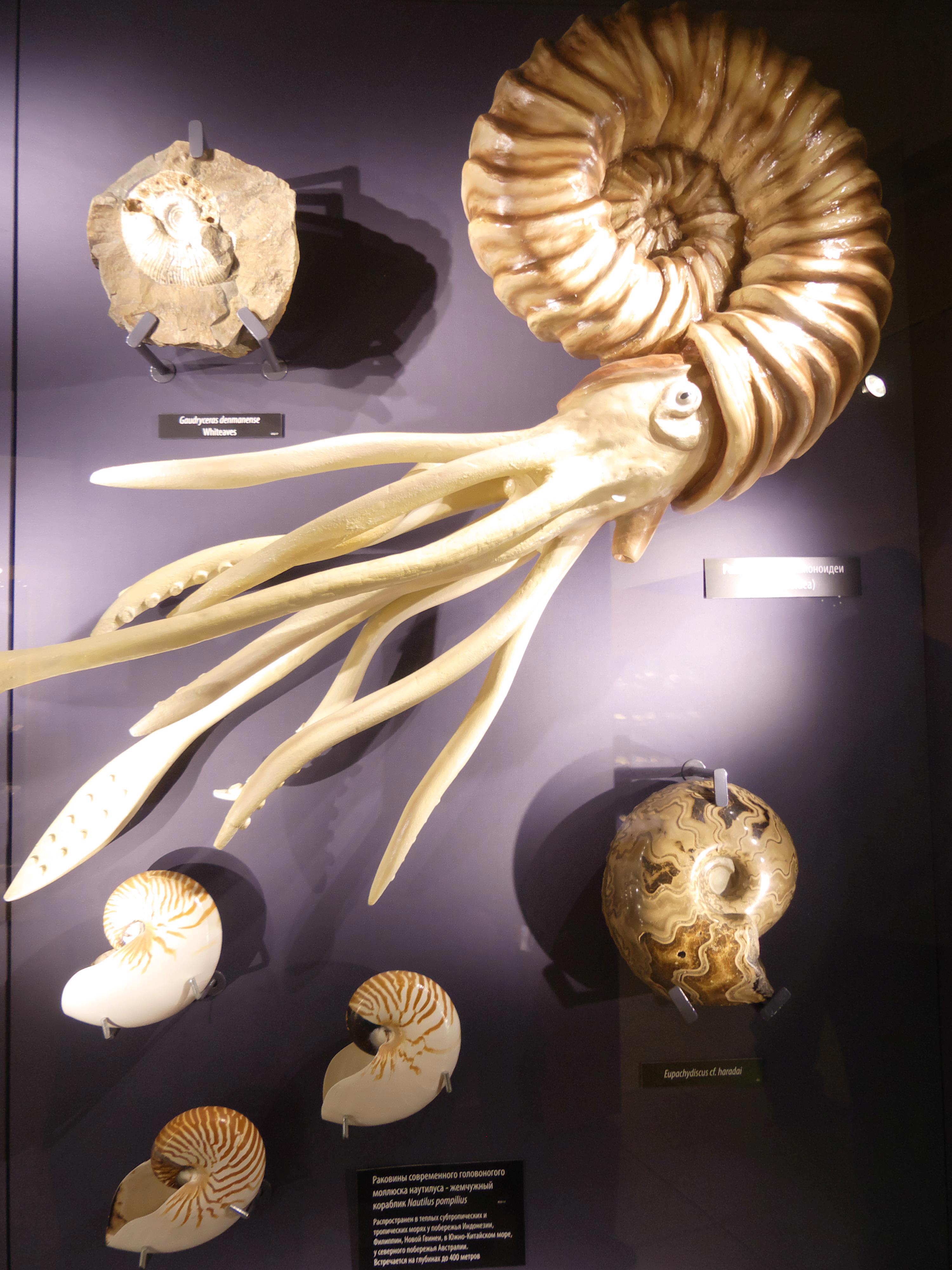 Экспонаты музея - раковины наутилуса.