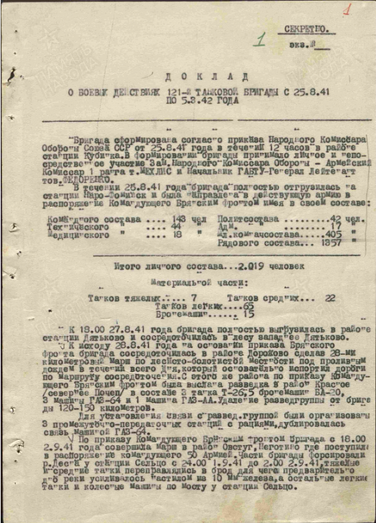 От автора. Эта инфа с сайта "Танковый фронт". А ниже привожу уже документы с сайта "Память народа".