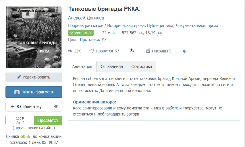 Это ещё не всё. Много книг как со скидками, так и без оных, можно найти здесь: https://author.today/u/dyagilev_19731