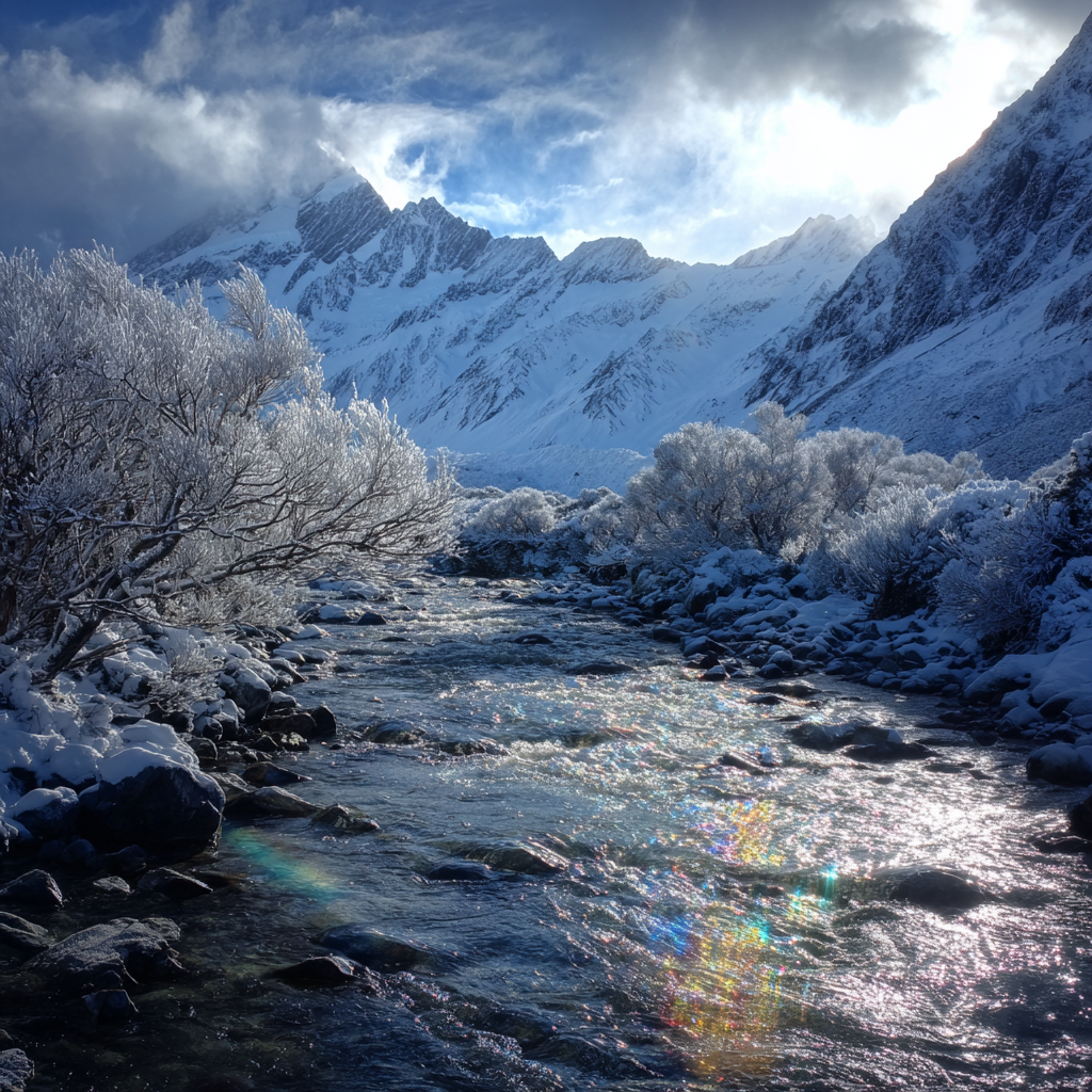 Алик с Пушком поставили две палатки, пока девчонки восторгались пейзажем и голографировались на фоне реки, кокетливо расстегнув шубки. Пейзаж и вправду был захватывающим на диво: солнце серебрило бегущую воду, снег на ветках искрился, преломляя свет и переливаясь всеми цветами радуги; на вершинах, вздымающихся на заднем плане, сверкал ледник, а чуть ниже чернели скалы, с которых сдувало снег верховым ветром...