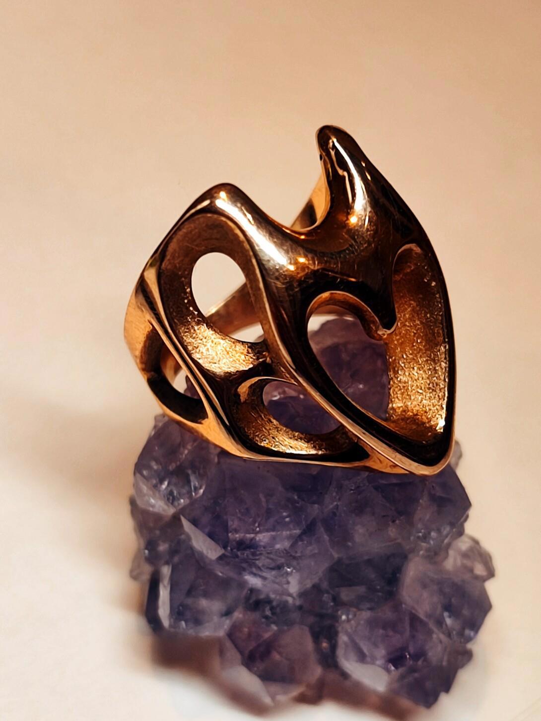 К сожалению, поработать по этой специальности мне практически и не пришлось, хоть у меня и осталось на память несколько колец, сделанных собственными руками. Например, вот это, бронзовое - настоящий олдскулл, потому что отлито по не по 3D-модели, а по вырезанной ножичком из воска >>