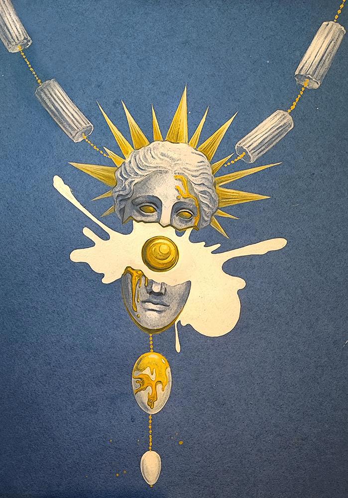 Почему я вообще об этом вспомнила? Потому что мне на глаза попалась папка со старыми эскизами; и я хочу показать вам один из них - мою зачетную работу по предмету "История ювелирного искусства", - но не только сам финальный эскиз, но и "шаги" до него.