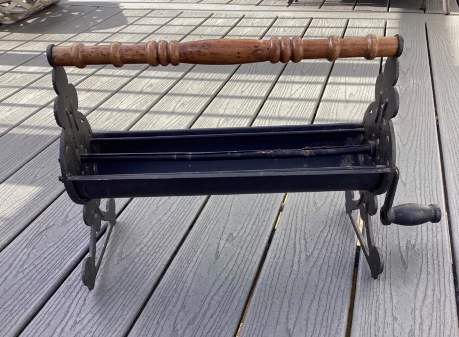 Внимательный читатель мог заметить, что сцену я переписал, чтобы поставить туда модель поновее и полегче. Такую не надо прикручивать к авто сзади, она помещается даже в маленький багажник. Этот скручиватель газет называется log roller, популярность он обрел в начале XX века, но продается до сих пор. Причем я подозреваю, что это никакой не антиквариат, а новодел, но какая разница.