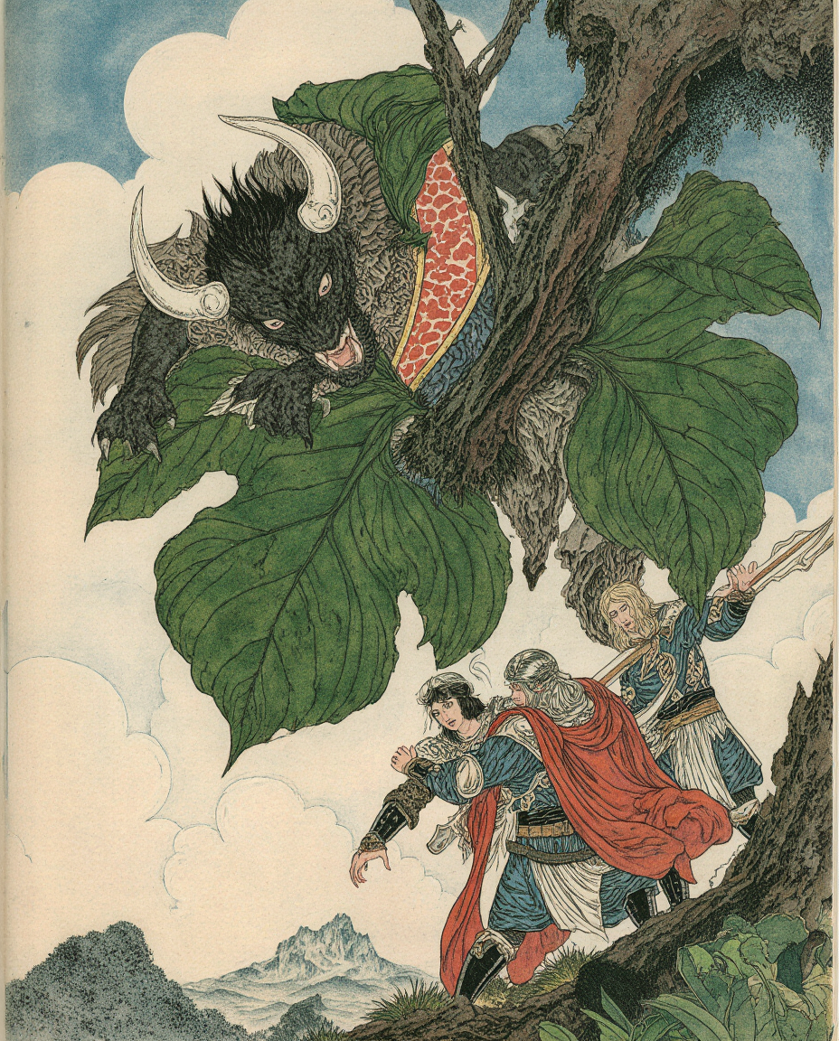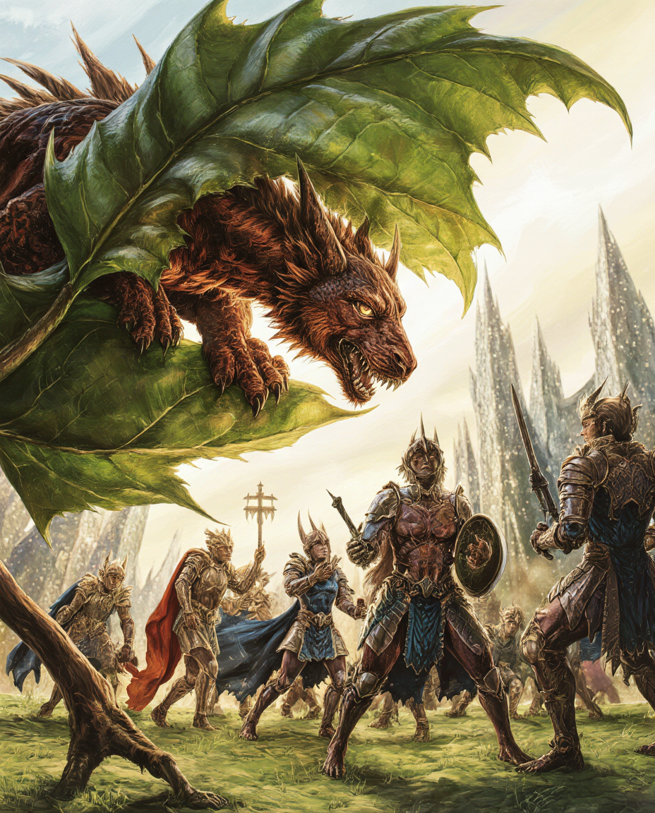 Вариант 3: это больше всего похоже на обложки для АТ. Смущает фон картинки. Рыцари тут конечно смешные. Зато образ мантикоры ближе к классике